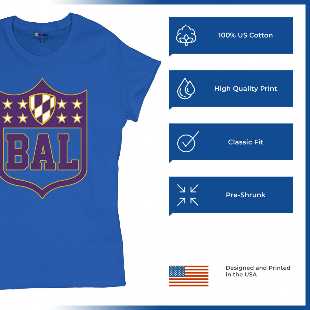 Celebrate your Baltimore pride with this bold BAL shield design. Perfect for football season, this Baltimore athletic shirt blends retro Baltimore football shirt style with collegiate energy. From tailgate party Baltimore tees to vintage BAL sports shirts, it’s built for fans who thrive on touchdown vibes, football culture, and Baltimore city pride. A shield logo Baltimore shirt every fan will love.