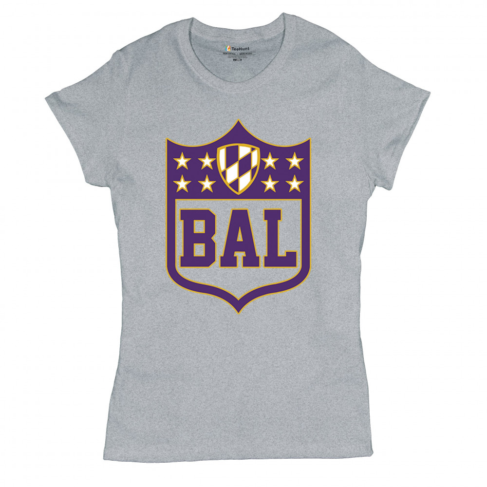 Bold BAL shield design for Baltimore football fans. Vintage sports shirt, collegiate style, and perfect Game Day Baltimore tee.