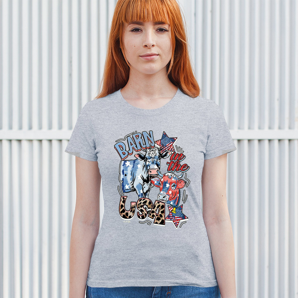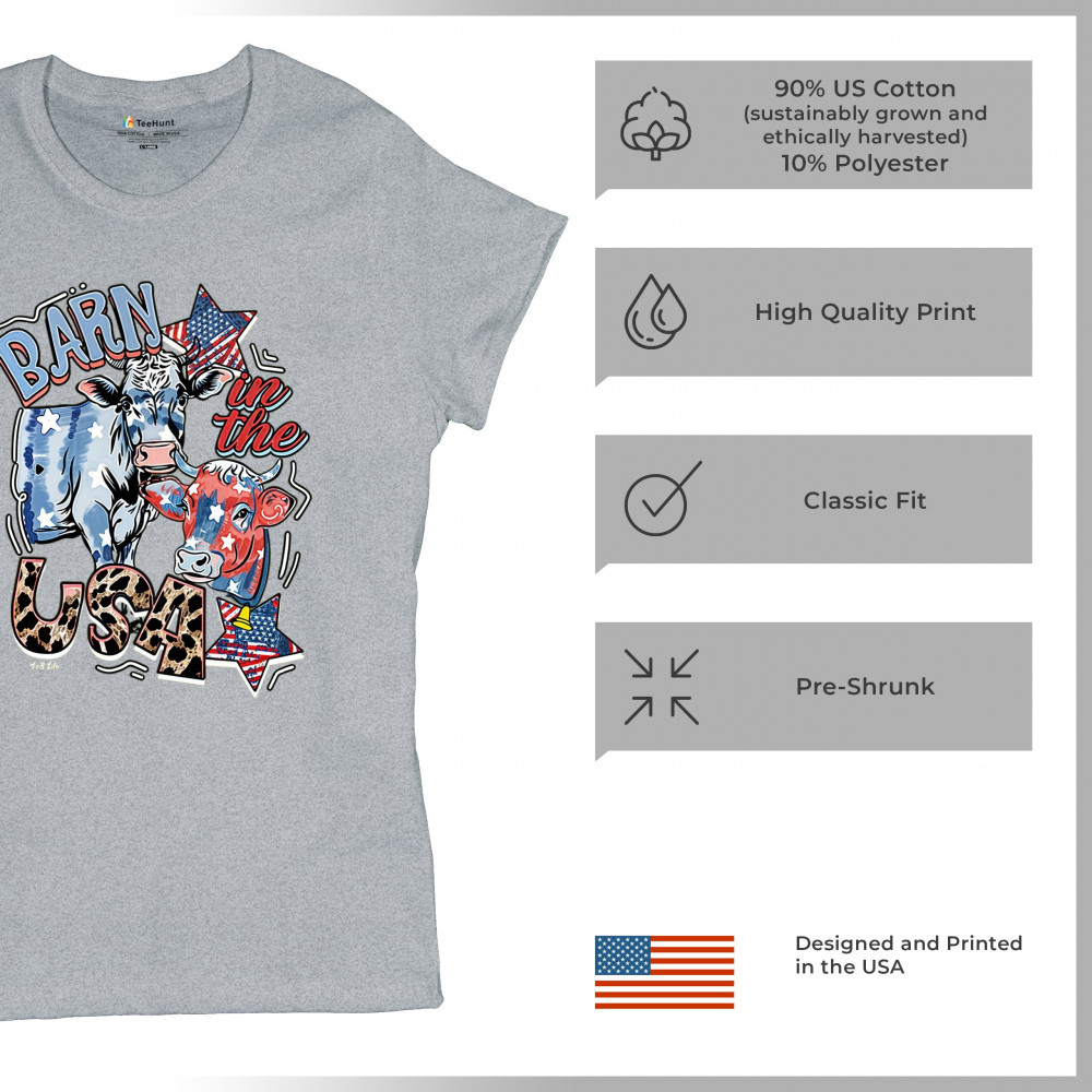 Celebrate American farming and patriotic spirit with our playful "Barn in the USA" design, a blend of whimsy and pride.