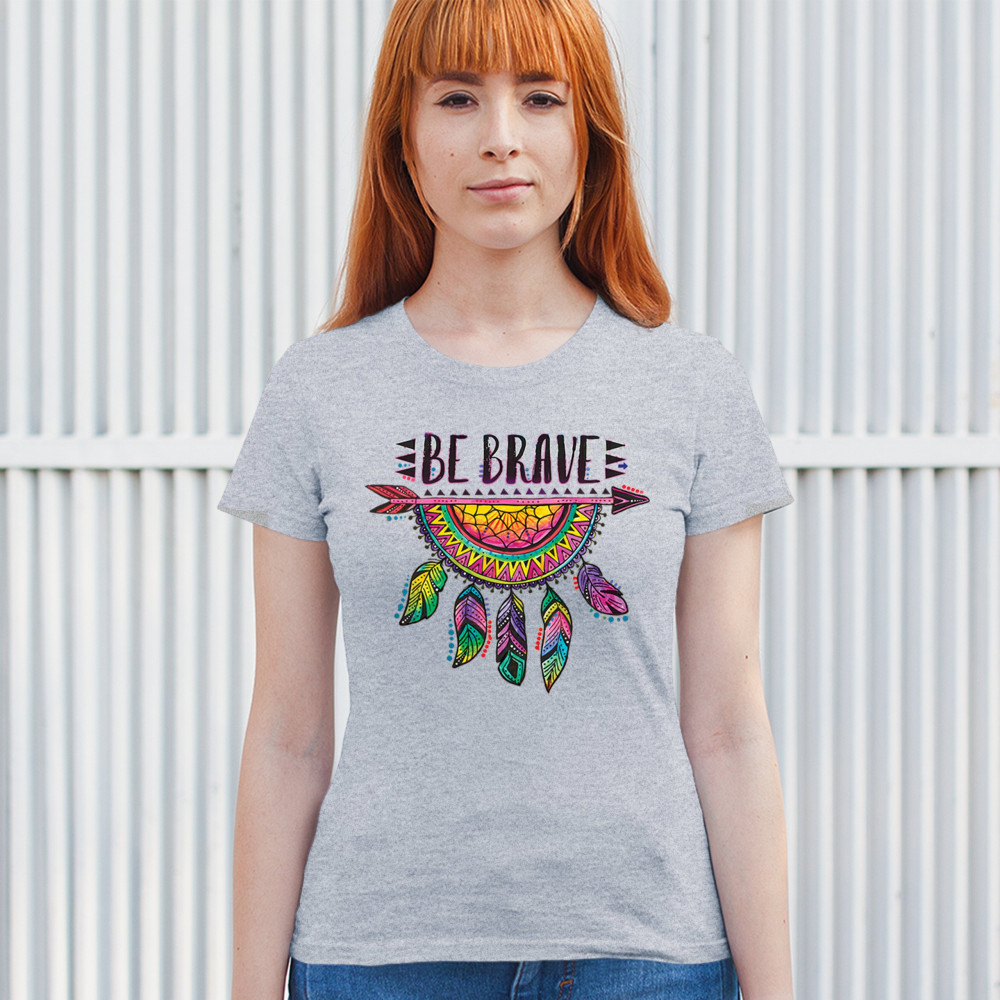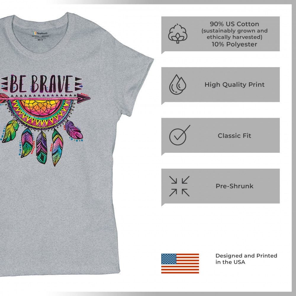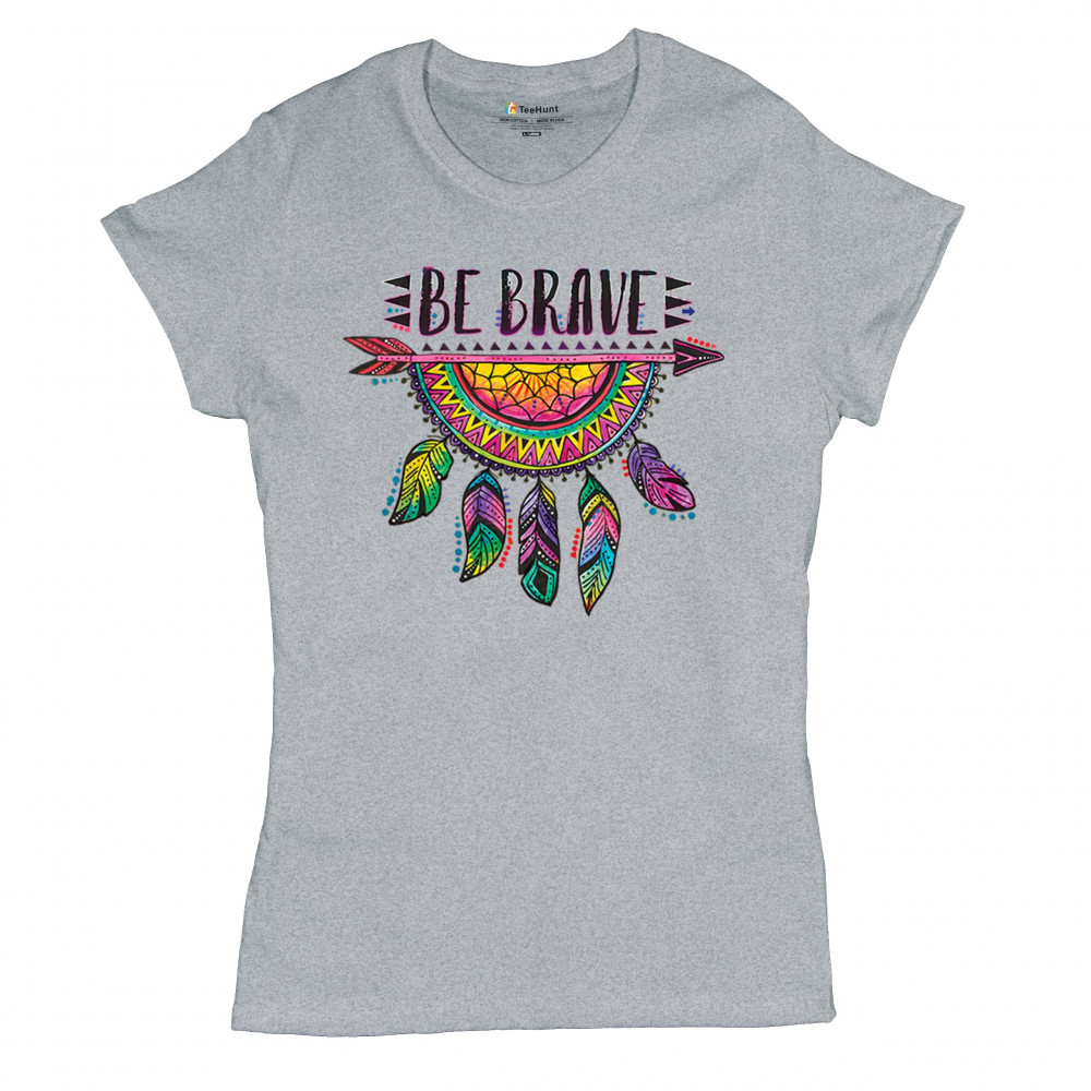 BE BRAVE DREAM CATCHER t-shirt dean russo motivation feather women's tee gray
