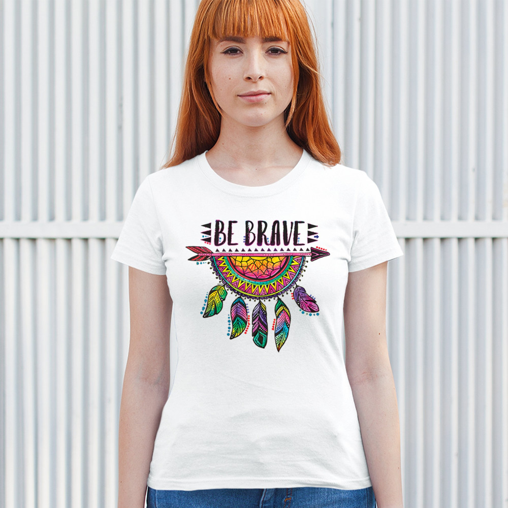 BE BRAVE DREAM CATCHER t-shirt dean russo motivation feather women's tee white