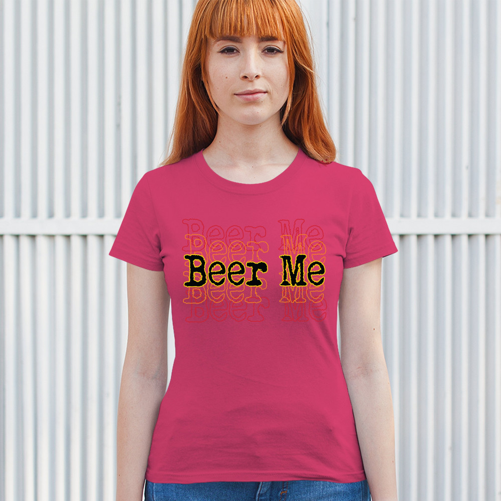 “Beer Me†brings sarcastic drinking humor to life with bold distressed lettering and a grunge-style retro background. Perfect for bar nights, tailgates, beer festivals, or casual party wear. A top pick for beer fans with a loud sense of humor and love for brews.