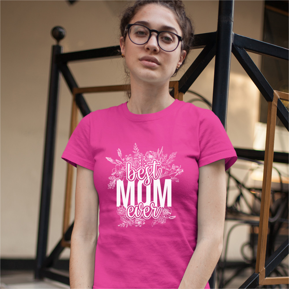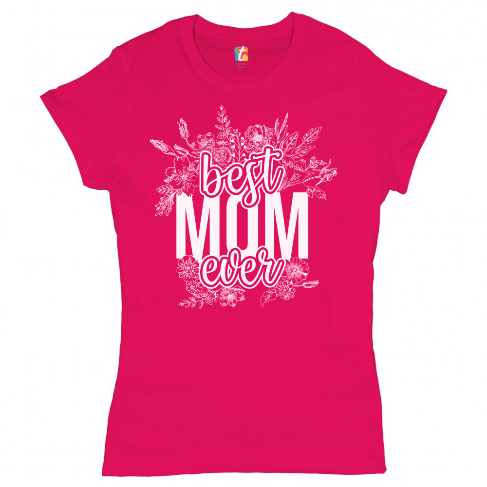 BEST MOM EVER t-shrit blessed mama mother's day maternity parenting women's tee hot pink