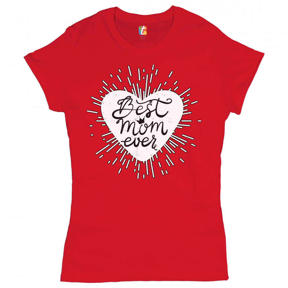 A beautiful print featuring a shining heart, inside of which there are words: "Best mom ever". There is a little crown above the letter "o". A great choice as a gift on Mother's Day for a loving caring mom.