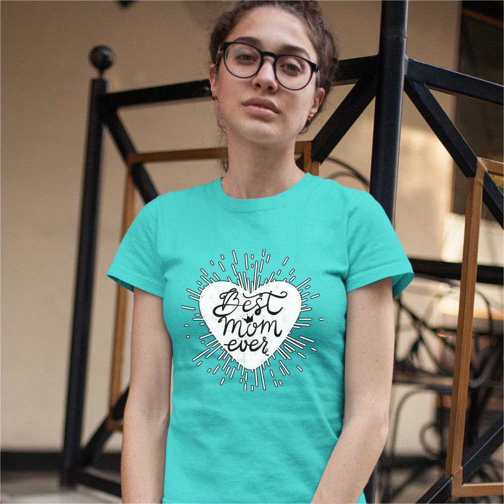 A beautiful print featuring a shining heart, inside of which there are words: "Best mom ever". There is a little crown above the letter "o". A great choice as a gift on Mother's Day for a loving caring mom.