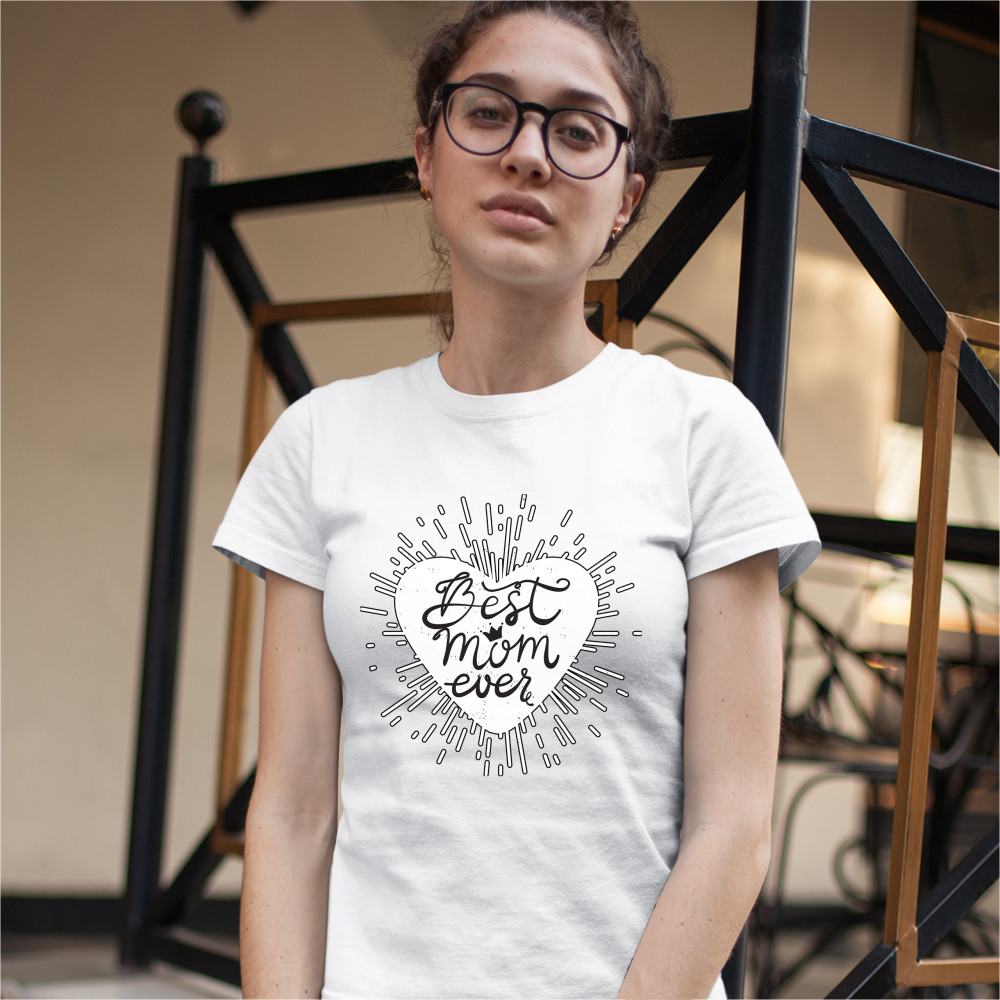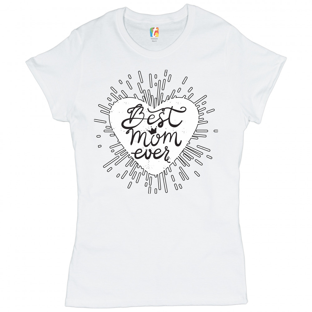 A beautiful print featuring a shining heart, inside of which there are words: "Best mom ever". There is a little crown above the letter "o". A great choice as a gift on Mother's Day for a loving caring mom.