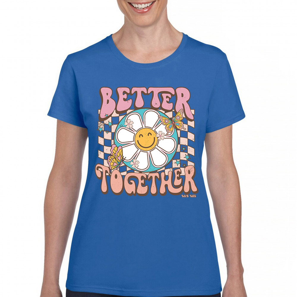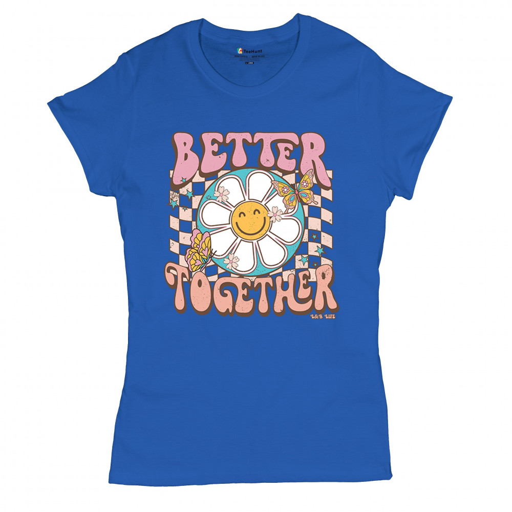 Join us in celebrating the simple joys with our "Better Together" design, where happiness blooms and friendships flutter like butterflies. This artwork is a sweet embrace of unity, crafted to bring smiles and a touch of retro charm to your life. It’s a delightful addition to any collection, symbolizing the belief that life's moments are sweeter shared. Adorn your favorite space with a design that's as warm and welcoming as a sunny day.