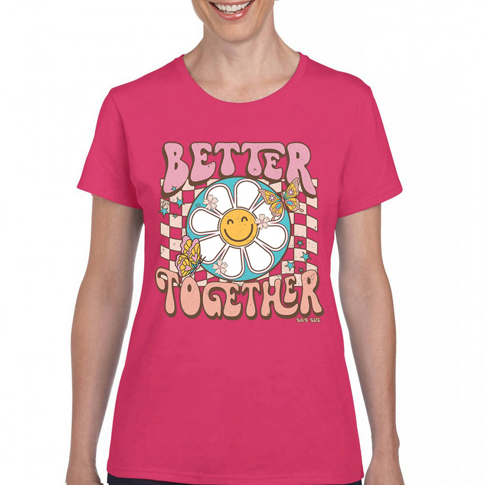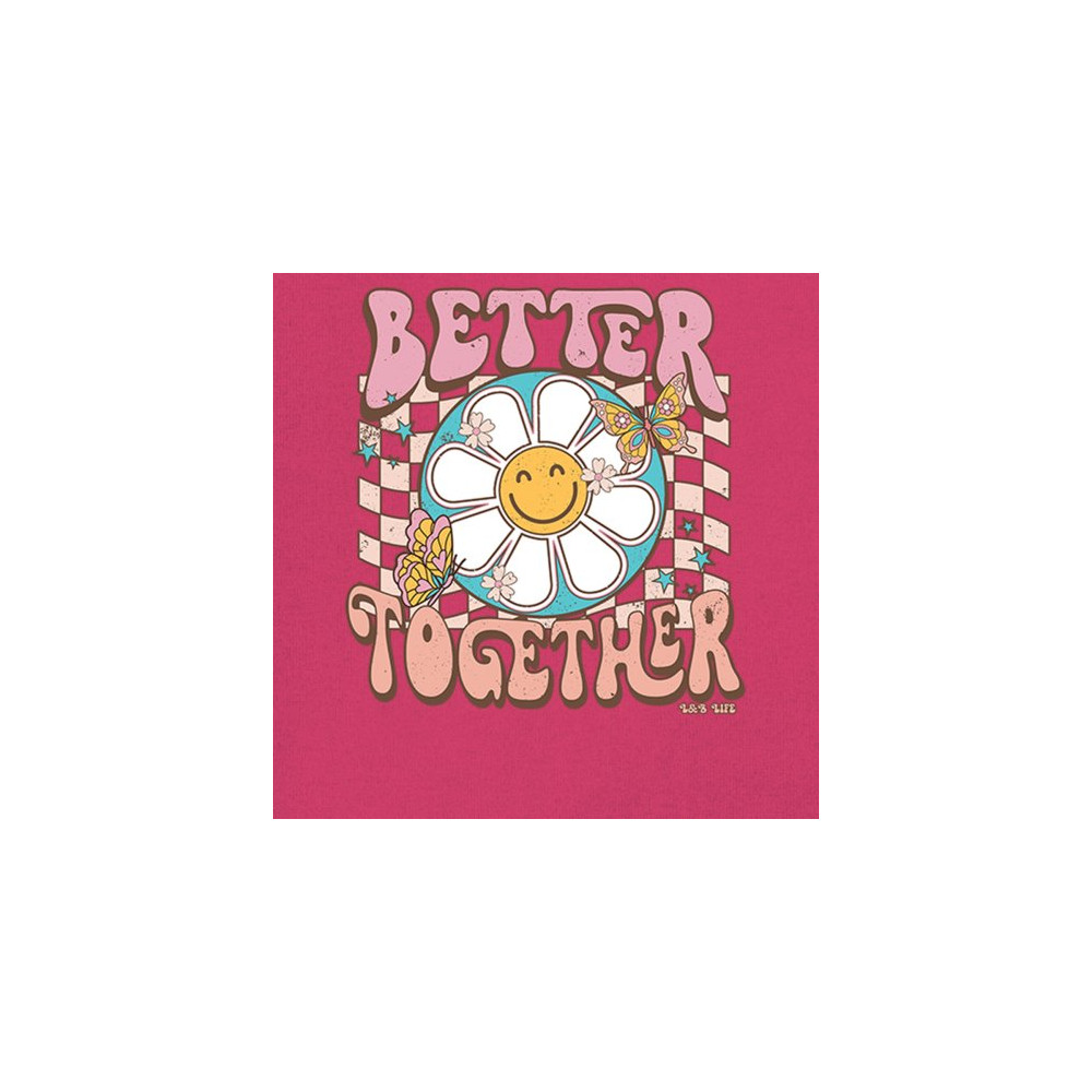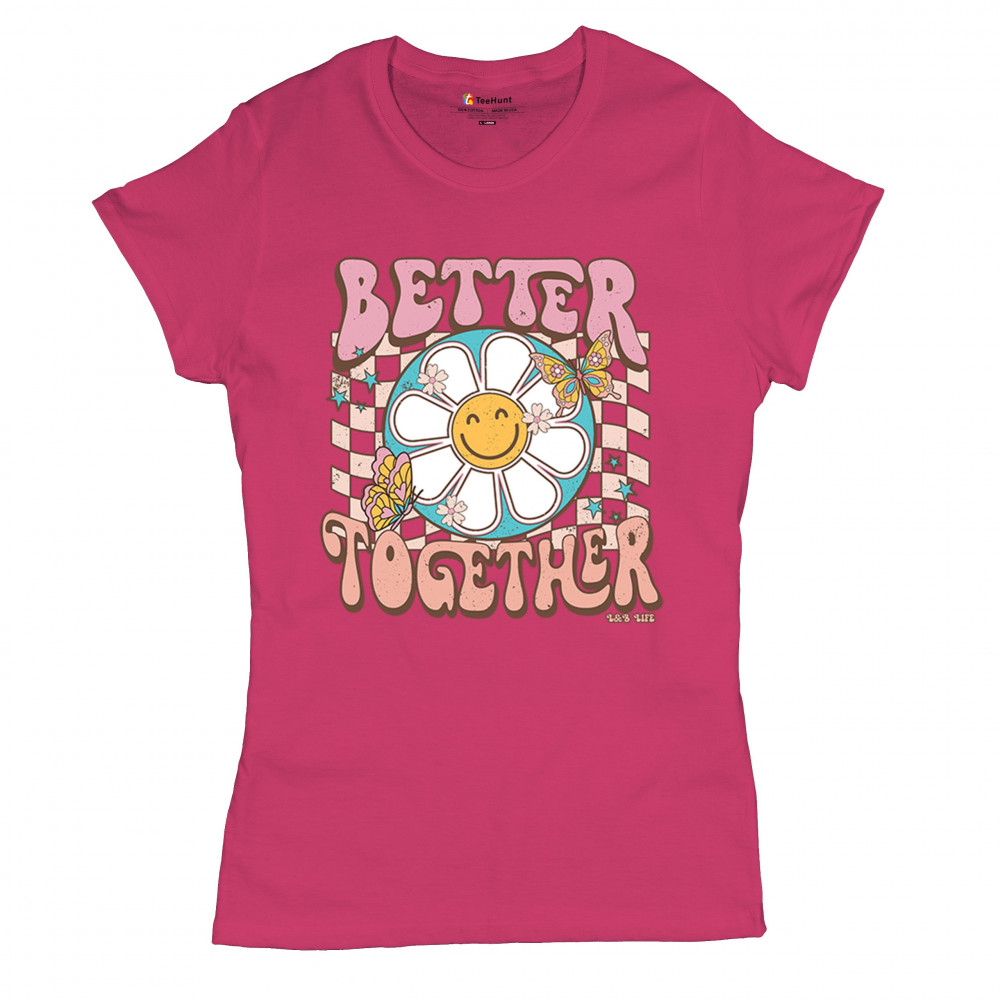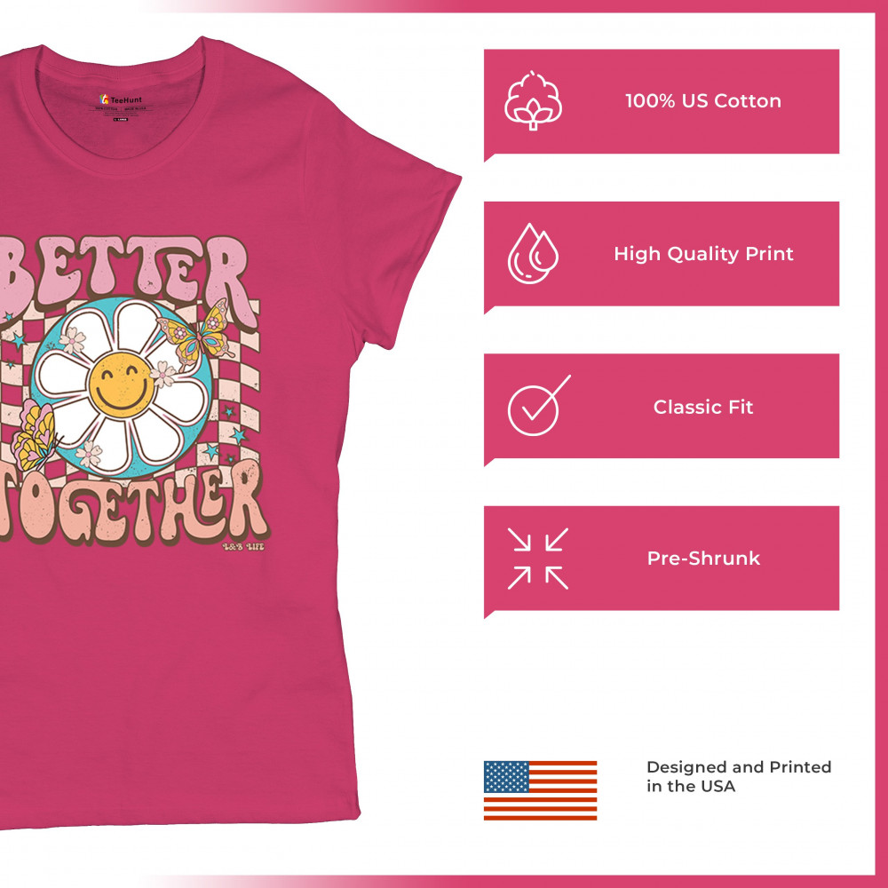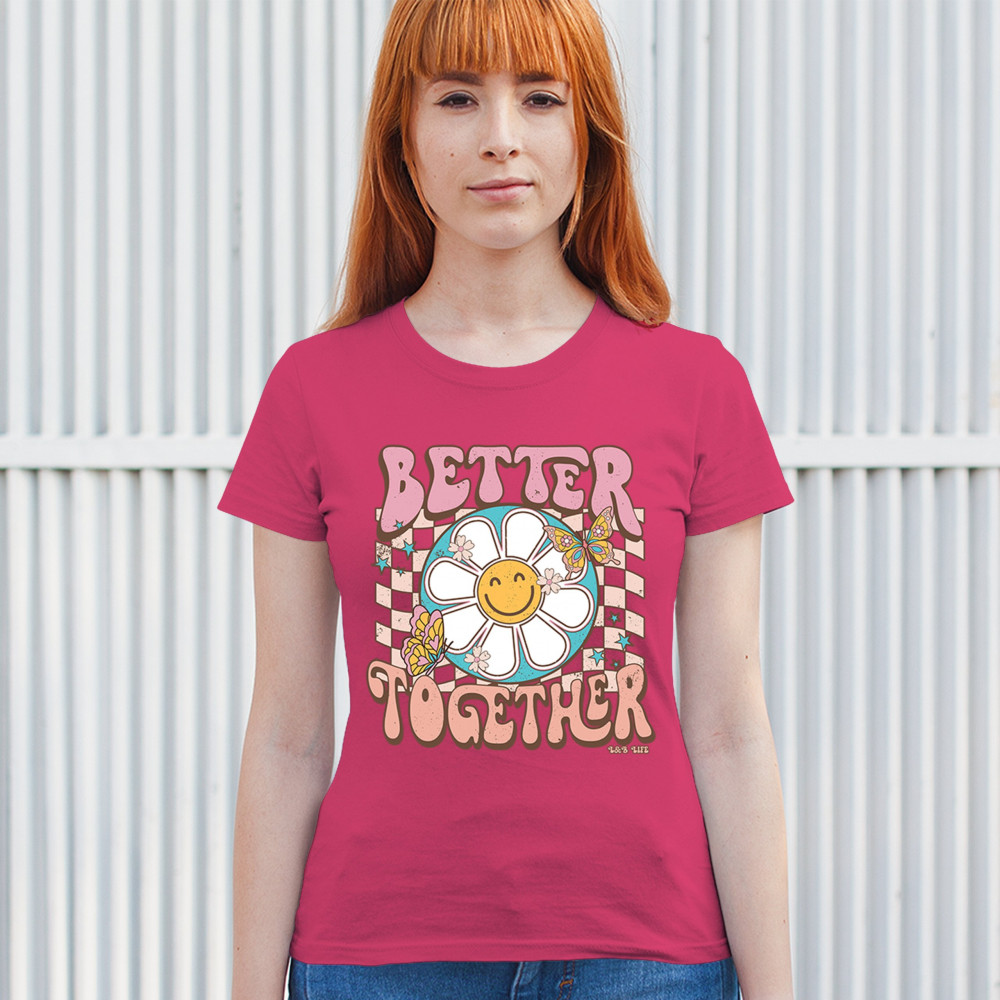 Join us in celebrating the simple joys with our "Better Together" design, where happiness blooms and friendships flutter like butterflies. This artwork is a sweet embrace of unity, crafted to bring smiles and a touch of retro charm to your life. It’s a delightful addition to any collection, symbolizing the belief that life's moments are sweeter shared. Adorn your favorite space with a design that's as warm and welcoming as a sunny day.