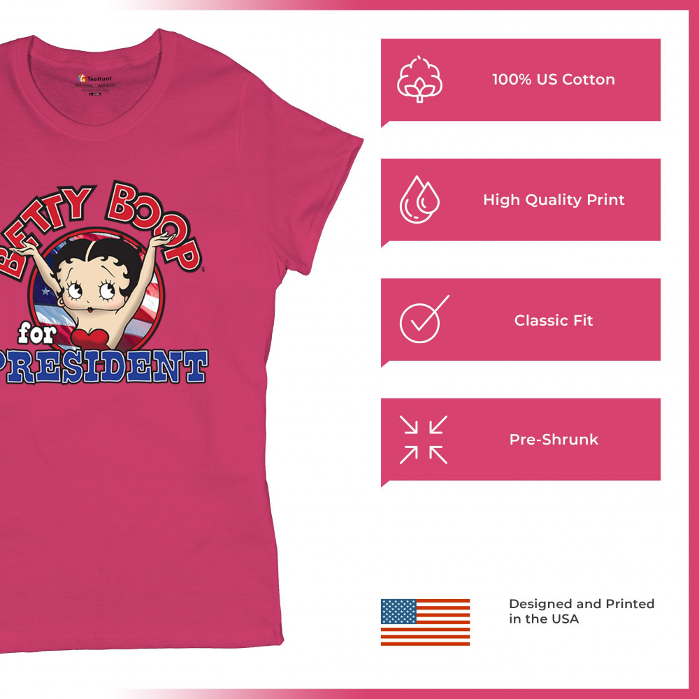 Show your playful side with the Betty Boop for President shirt! Perfect for cartoon lovers and fans of unique, humorous designs. Ideal gift for all occasions.