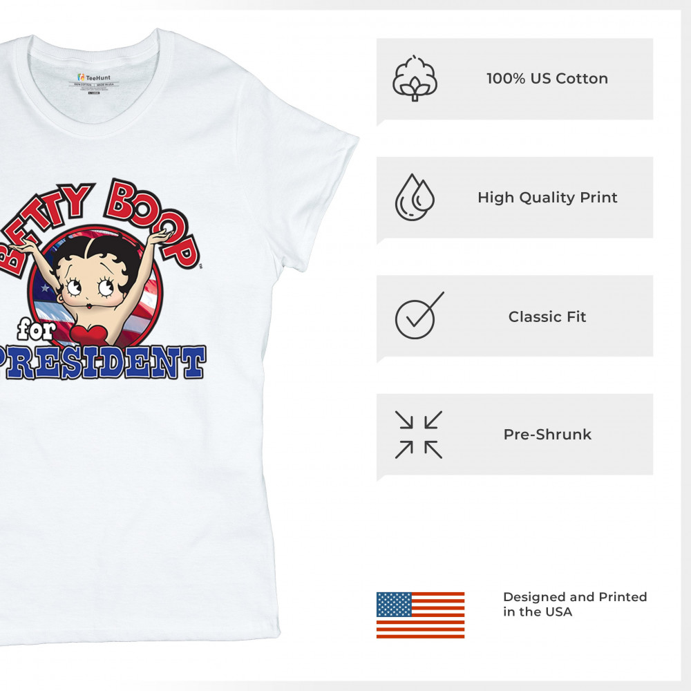 Show your playful side with the Betty Boop for President shirt! Perfect for cartoon lovers and fans of unique, humorous designs. Ideal gift for all occasions.