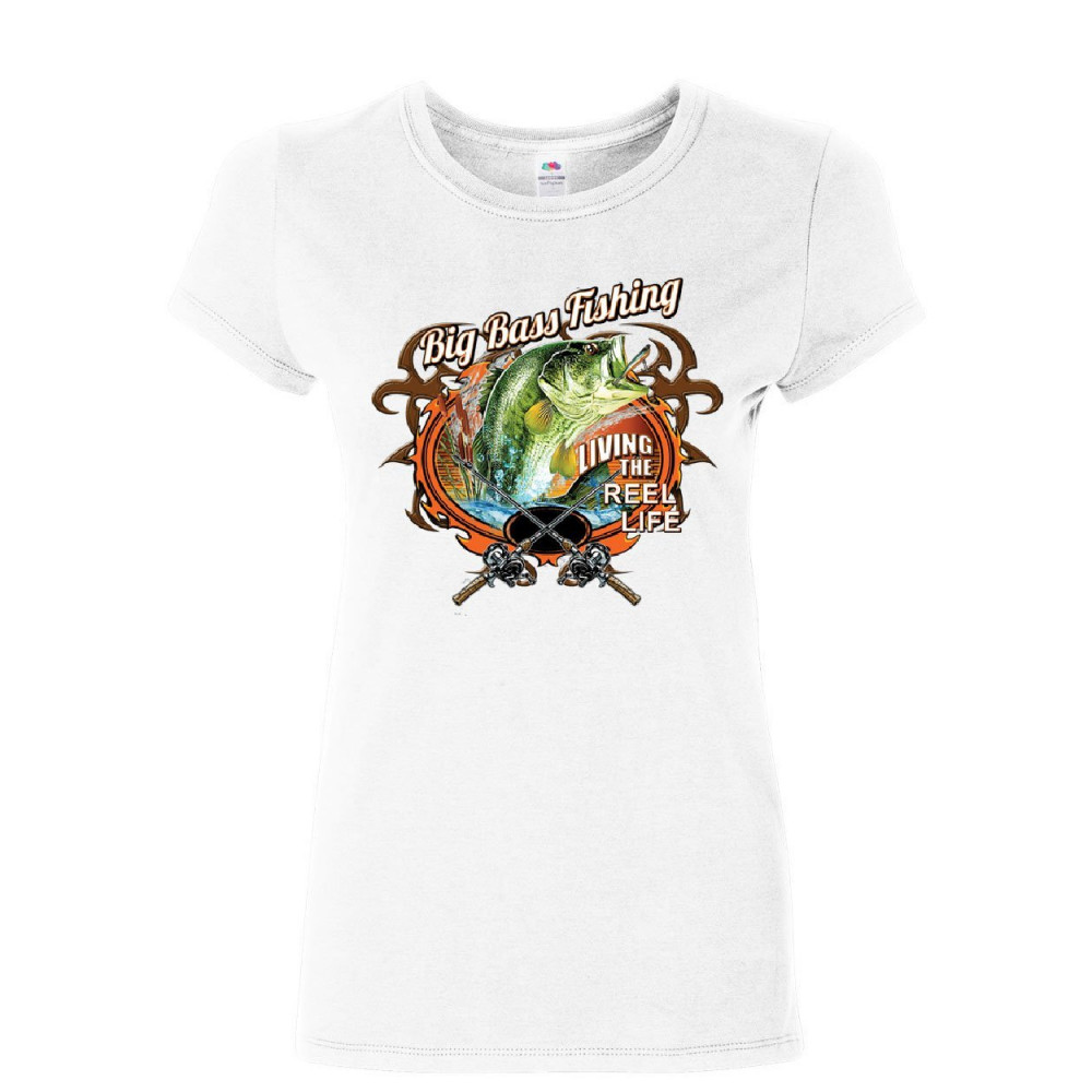 BIG BASS FISHING women's t-shirt living the reel life fisherman spinning shirt white