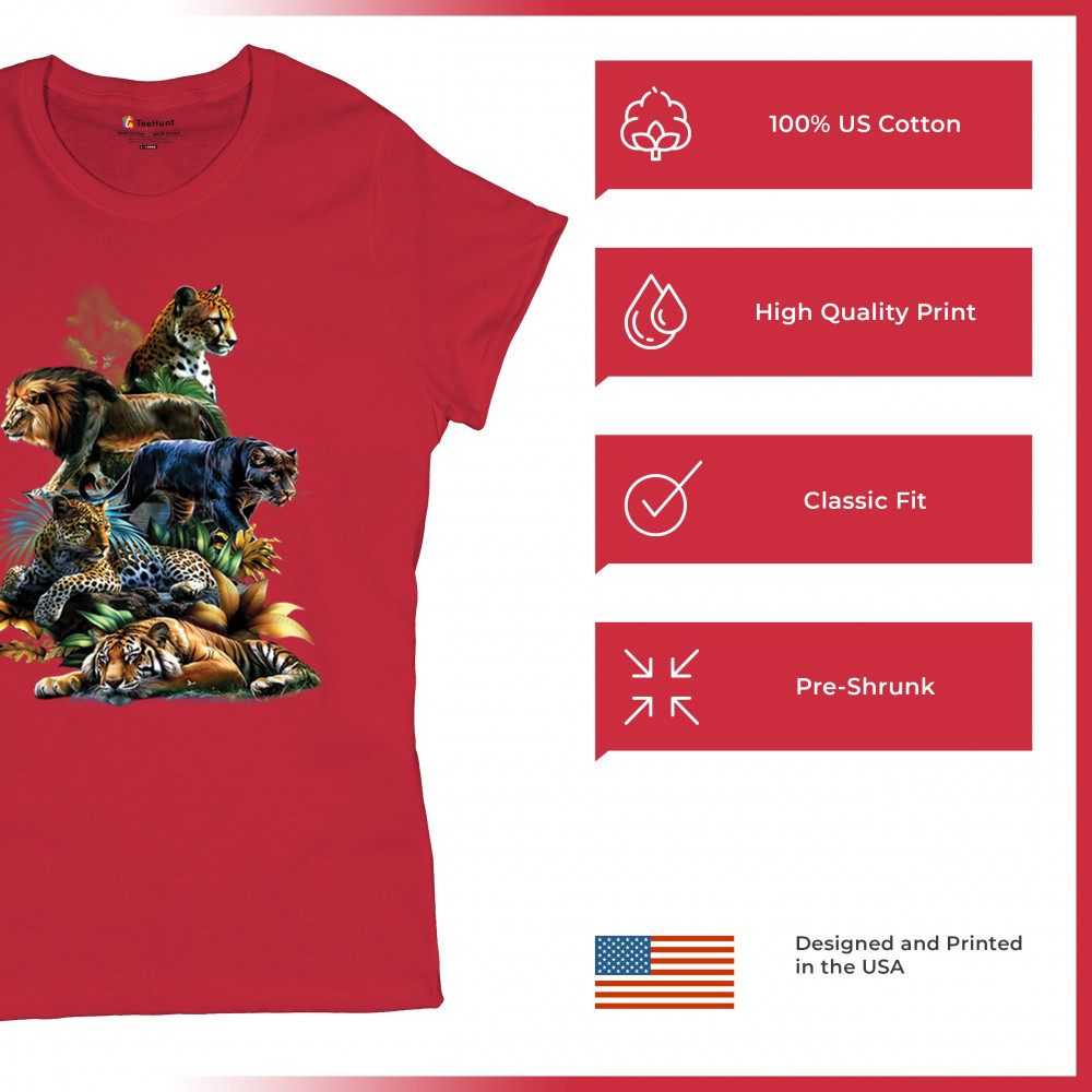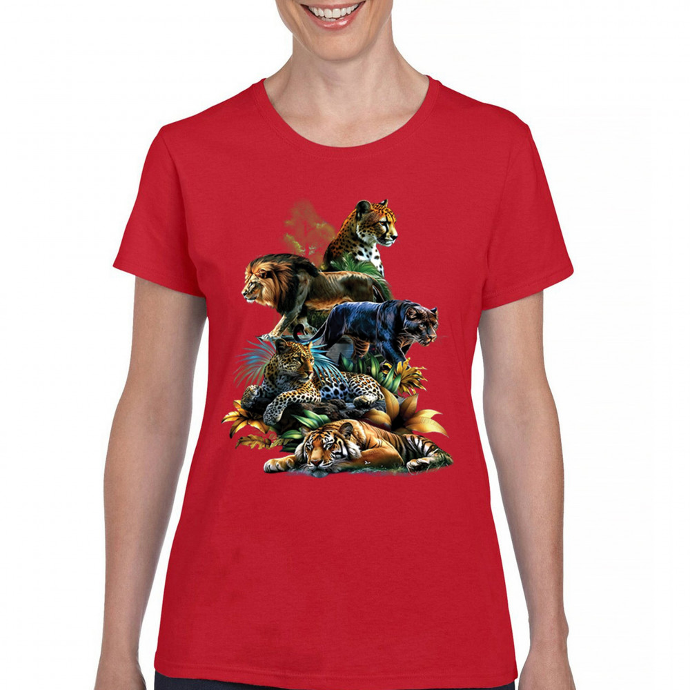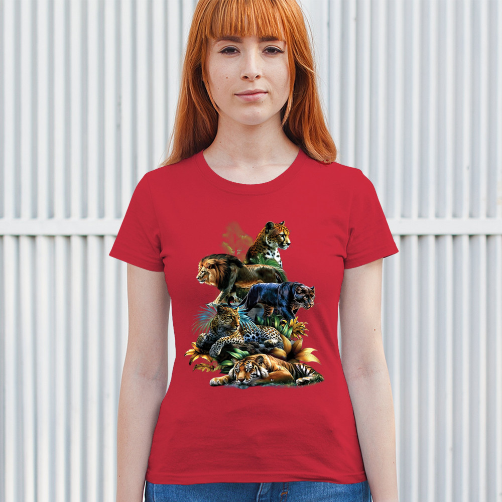 Bold big cat design with lion, tiger, leopard, cheetah, jaguar, and panther. A vivid tribute to wild nature, pride, and animal power.