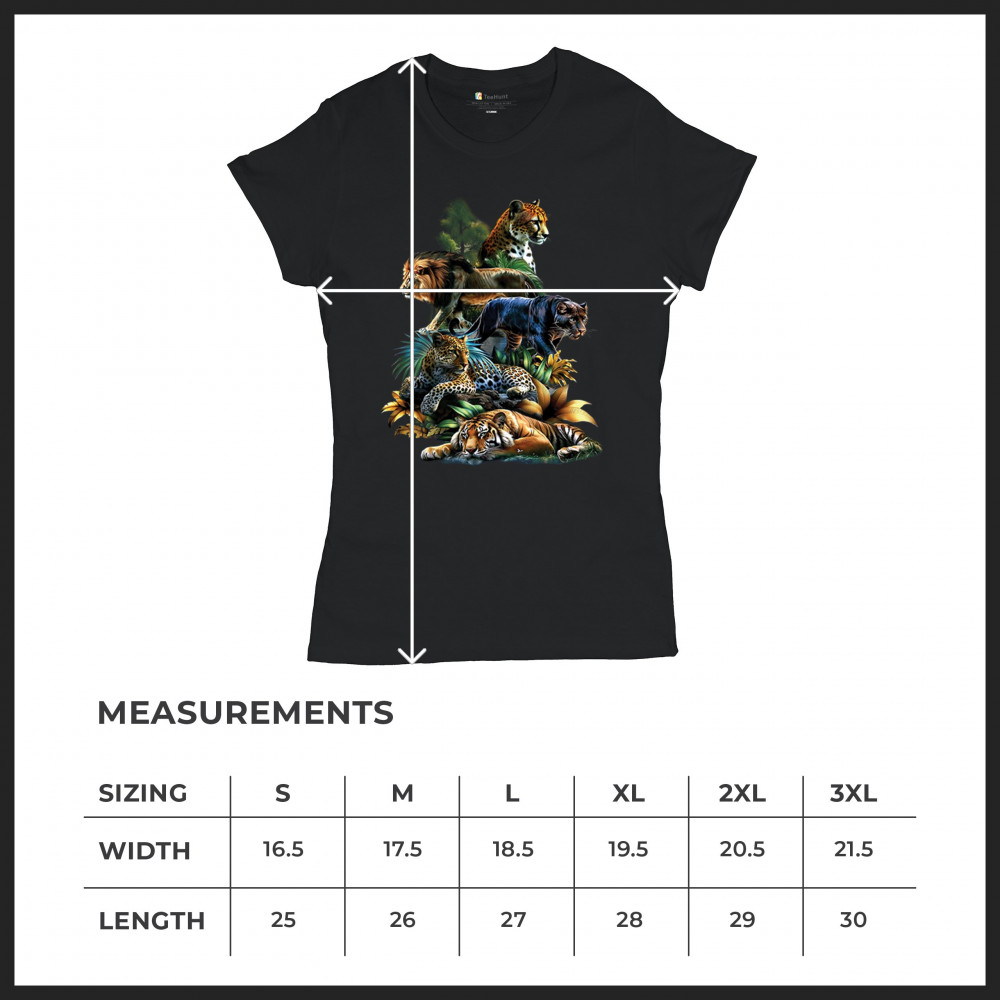 Celebrate raw power and untamed beauty with this stunning big cat design featuring lion, tiger, cheetah, black panther, jaguar, and leopard. Surrounded by vivid jungle foliage, each animal radiates strength, pride, and wild spirit. Perfect for fans of nature, safari vibes, wildlife preservation, and fierce animal energy.