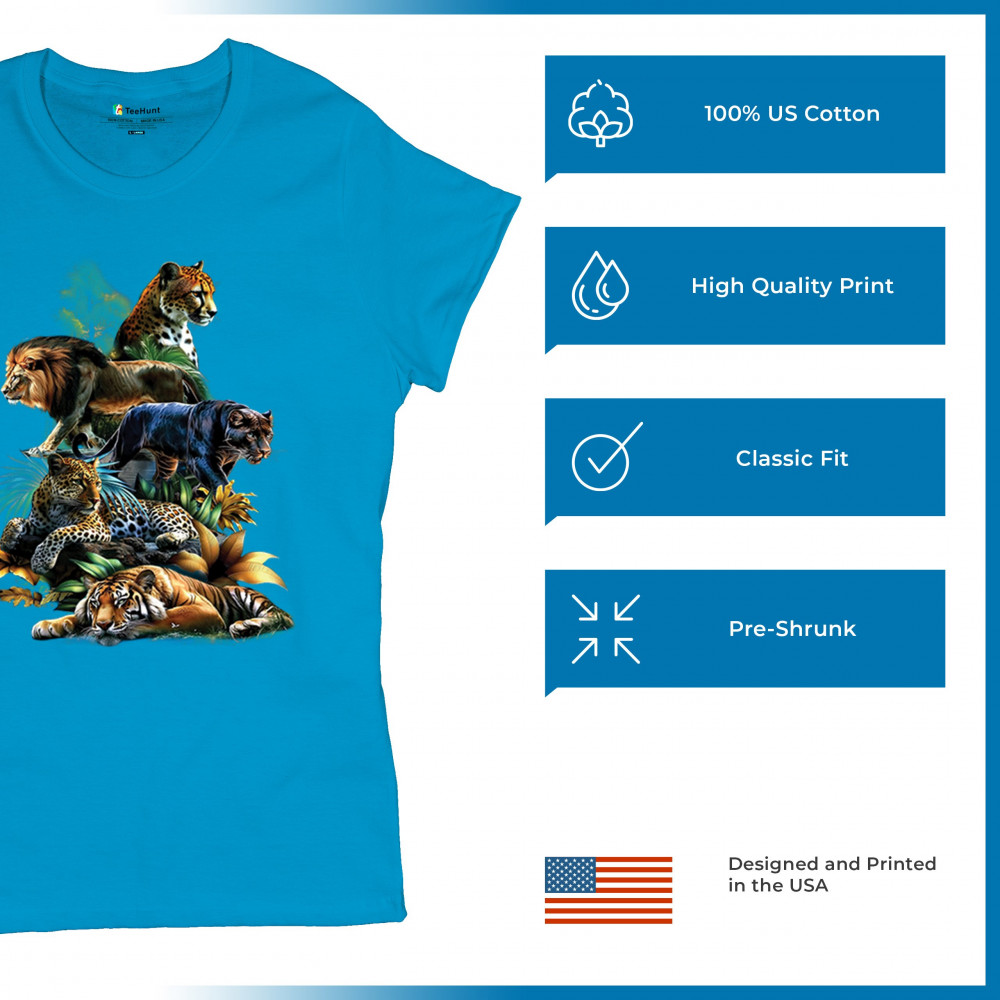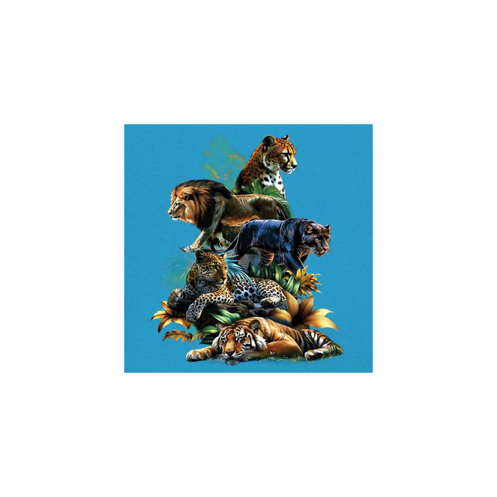 Bold big cat design with lion, tiger, leopard, cheetah, jaguar, and panther. A vivid tribute to wild nature, pride, and animal power.