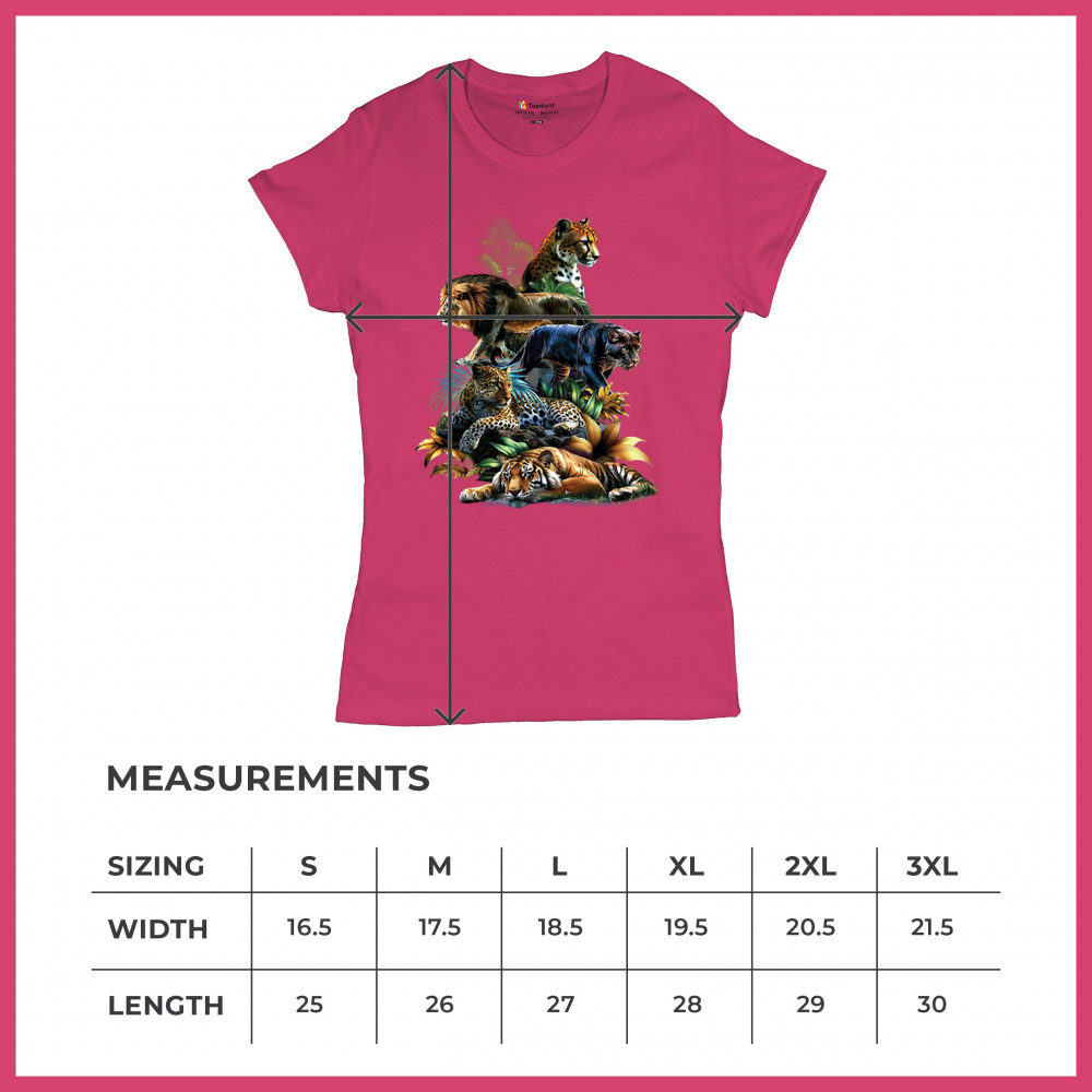 Celebrate raw power and untamed beauty with this stunning big cat design featuring lion, tiger, cheetah, black panther, jaguar, and leopard. Surrounded by vivid jungle foliage, each animal radiates strength, pride, and wild spirit. Perfect for fans of nature, safari vibes, wildlife preservation, and fierce animal energy.