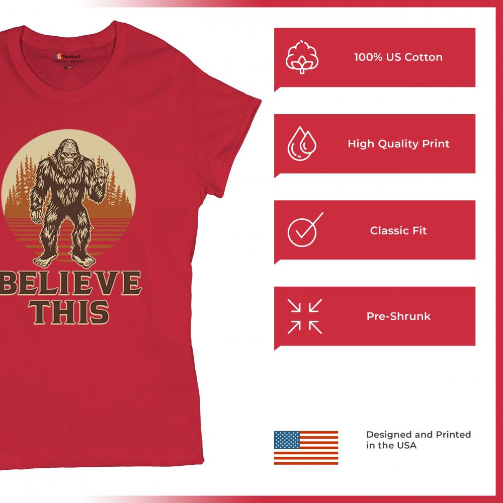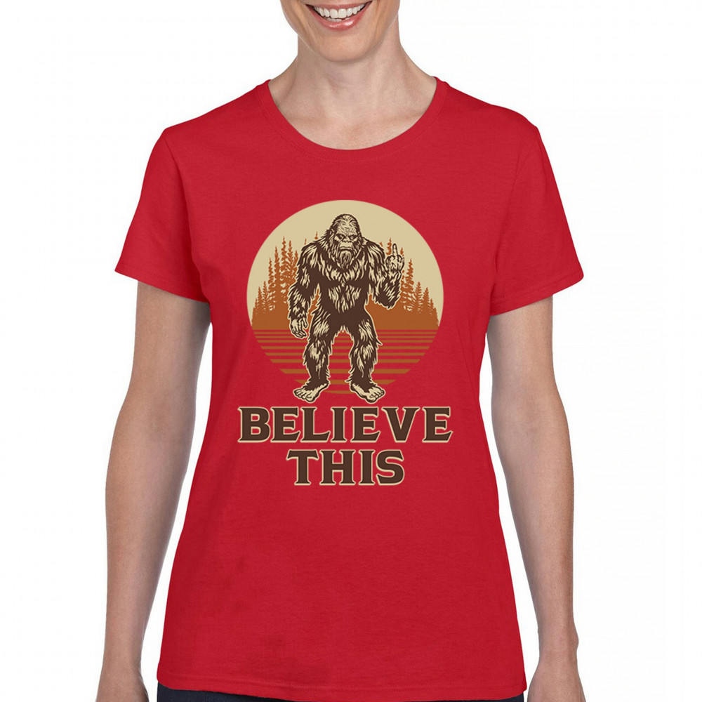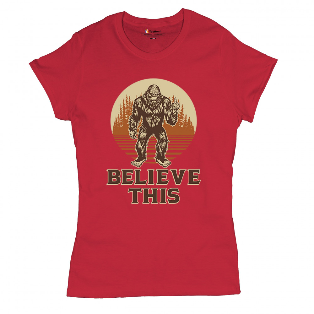 The Believe This Bigfoot design blends cryptid folklore with blunt attitude—because sometimes you just don’t care who believes. Featuring Bigfoot flipping the bird against a rustic tree line, it’s perfect for campers, rebels, and fans of sarcastic forest humor. Ideal for hikes, festivals, and off-grid living.