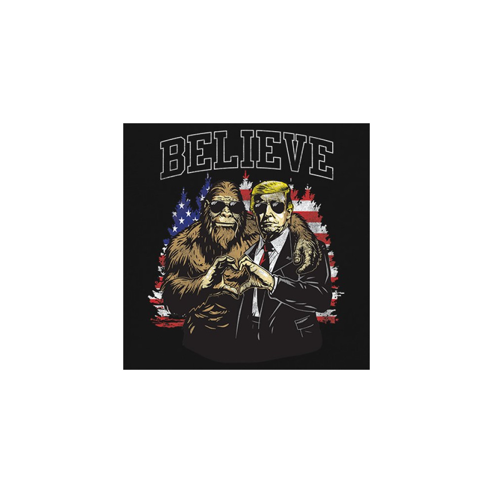 The "Believe" design combines patriotic pride and conservative values with a touch of fun. Featuring Donald J. Trump and a loyal Bigfoot against the American flag, this graphic is perfect for Trump supporters, Republicans, and believers in America First. Celebrate the Red Wave, the 47th President, and the unstoppable fight for victory. Ideal for anyone with unwavering belief in the people's mandate.