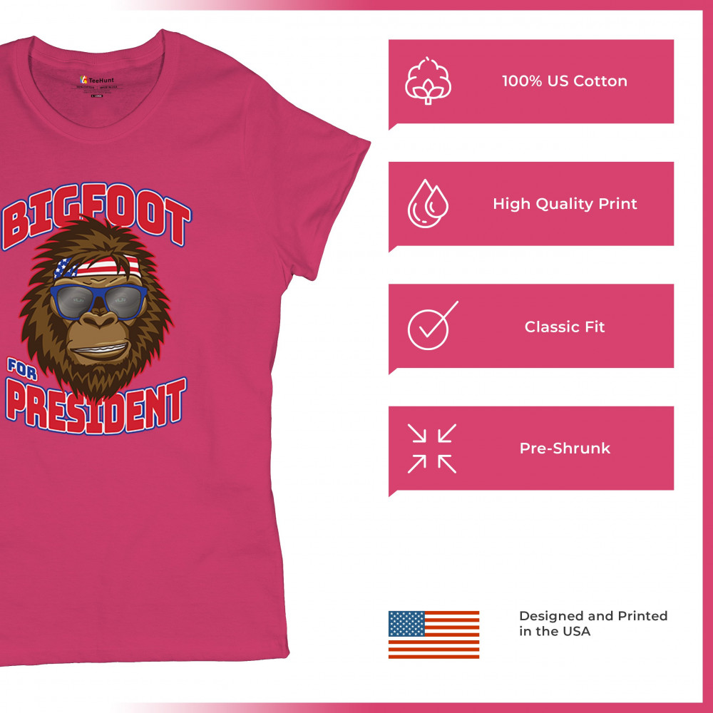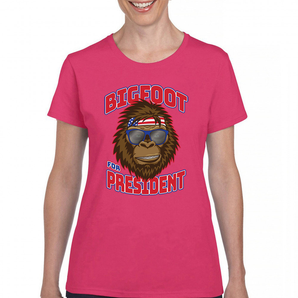 Show off your quirky style with the "Bigfoot for President" design. Perfect for casual wear and parties, featuring Bigfoot in sunglasses and a patriotic bandana.