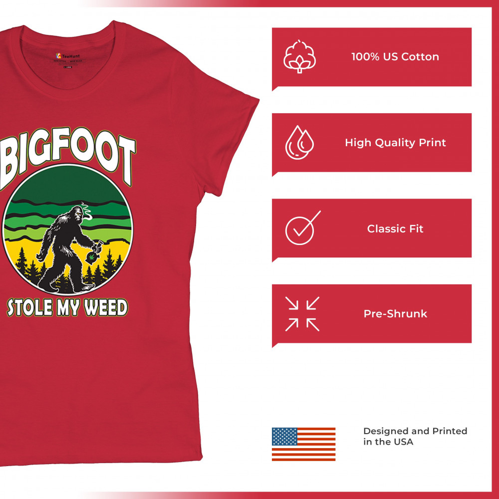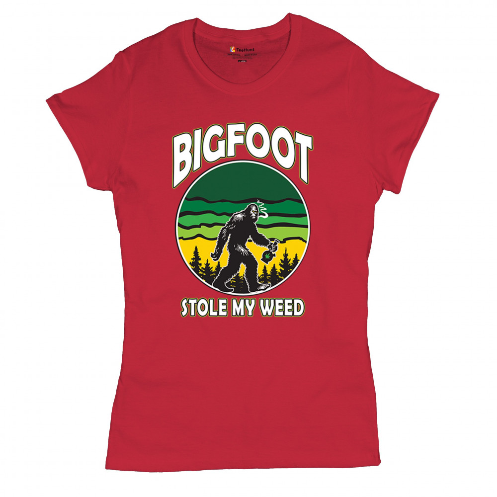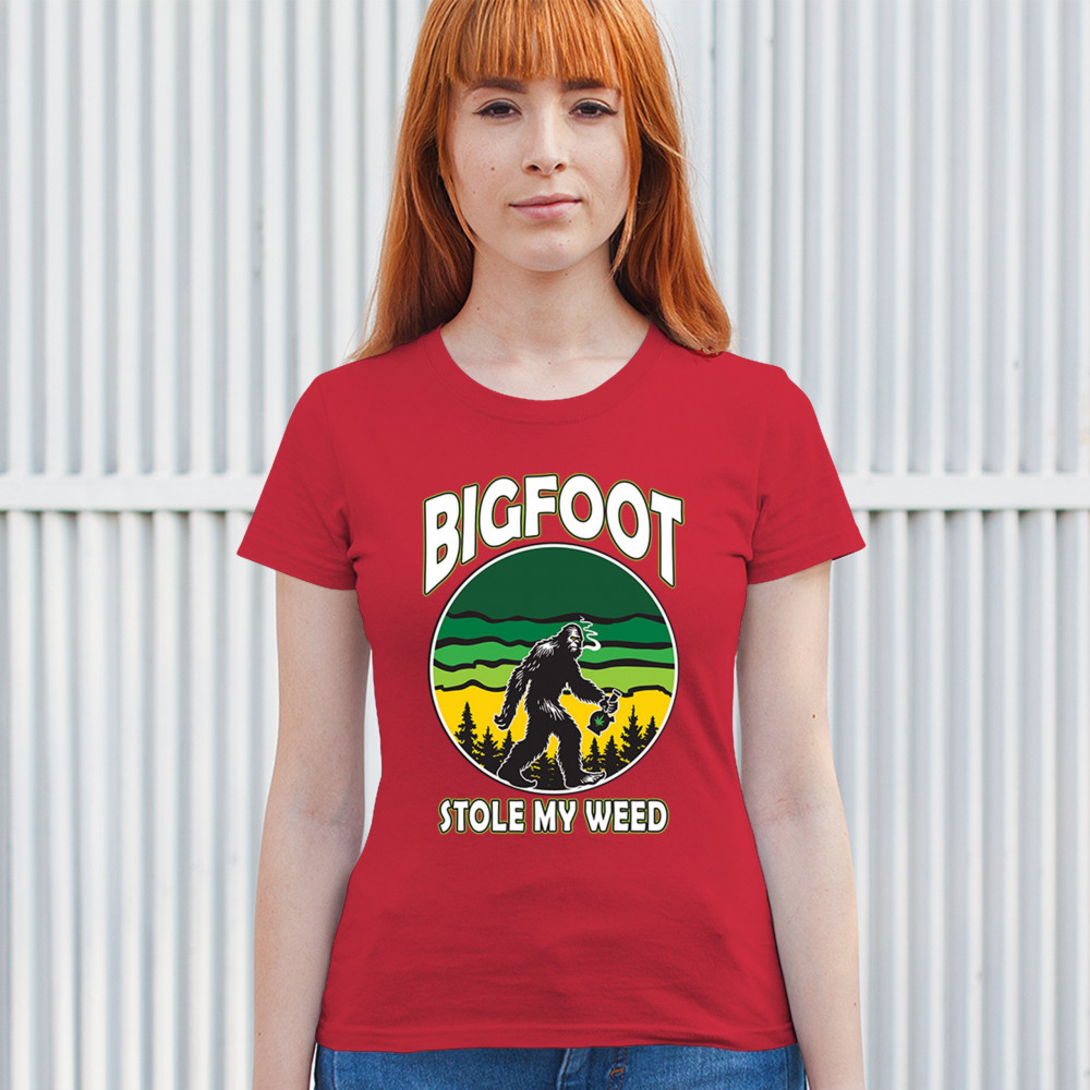 Humorous "Bigfoot Stole My Weed" design featuring Bigfoot and a cannabis leaf. Perfect for fans of Mary Jane, stoned humor, and a chill lifestyle.