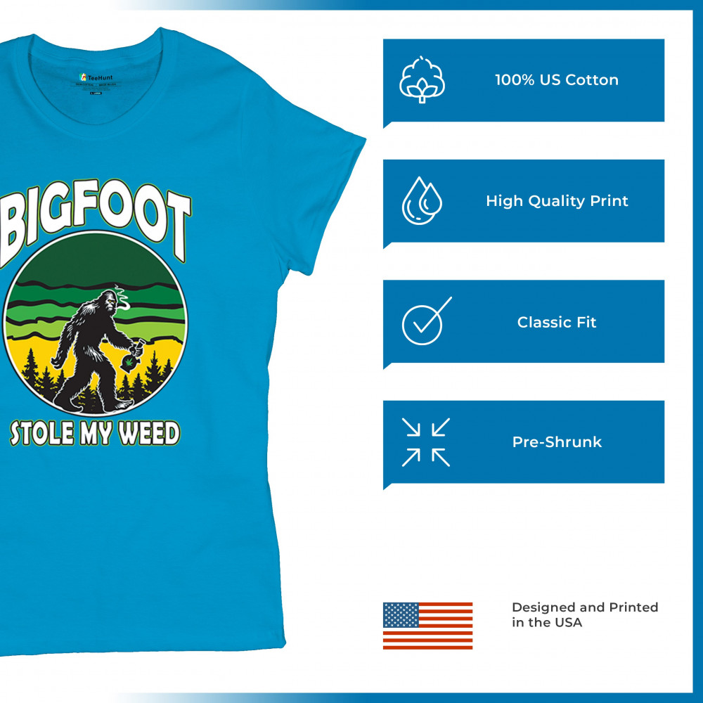 Experience the perfect blend of humor and cannabis culture with the "Bigfoot Stole My Weed" design. This playful design features a comical Bigfoot character holding a cannabis leaf, making it ideal for those who appreciate the humor and chill vibes of Mary Jane. Whether you're a pothead, enjoy stoned humor, or simply want to add some fun to your wardrobe, this design is sure to turn heads and bring smiles. Relax and embrace the trippy, laid-back lifestyle with this unique design.