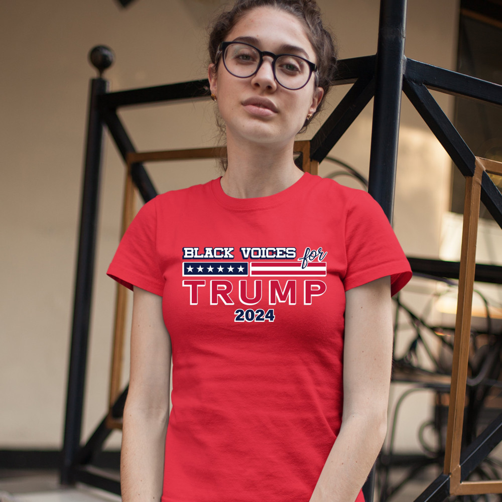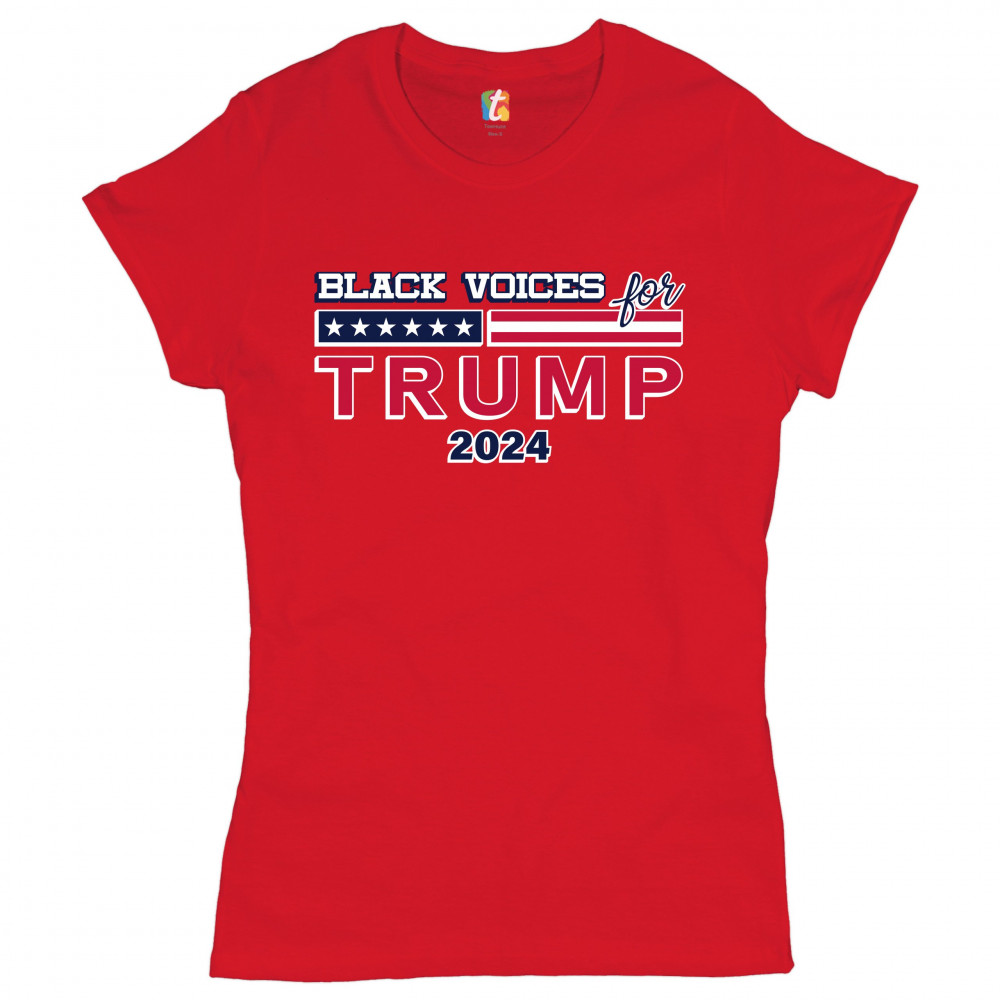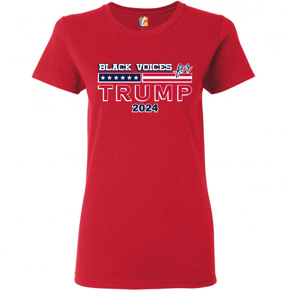 BLACK VOICES FOR TRUMP t-shirt donald trump 2024 stars and stripes women's tee red