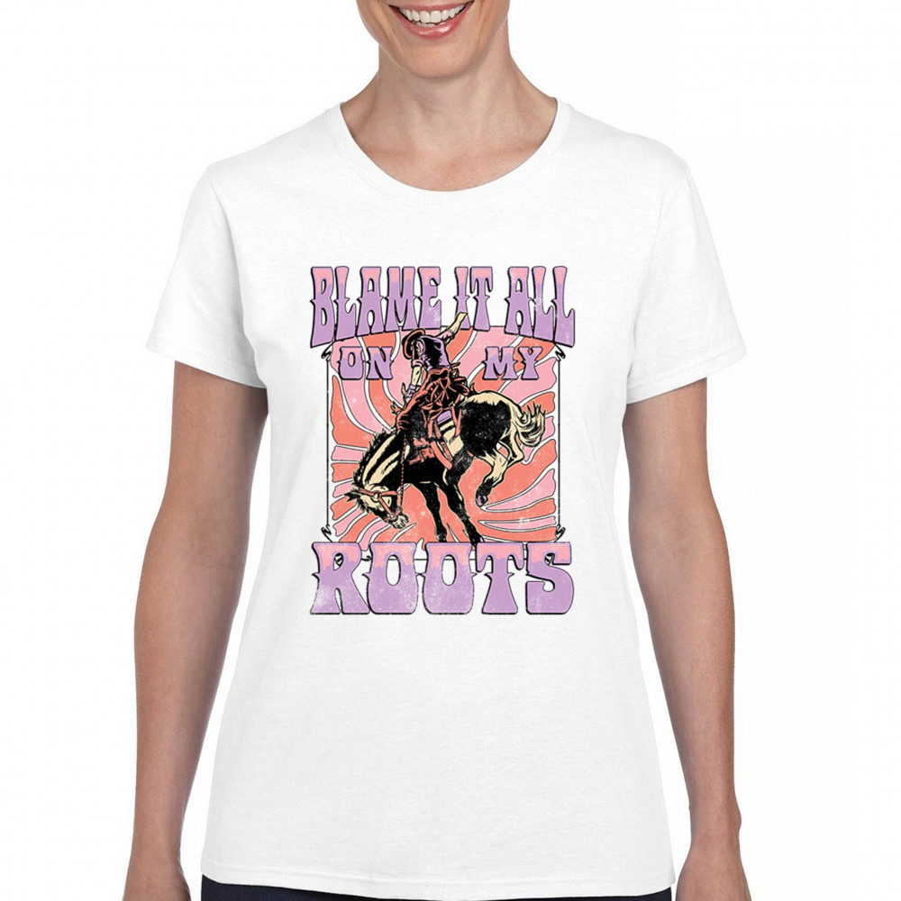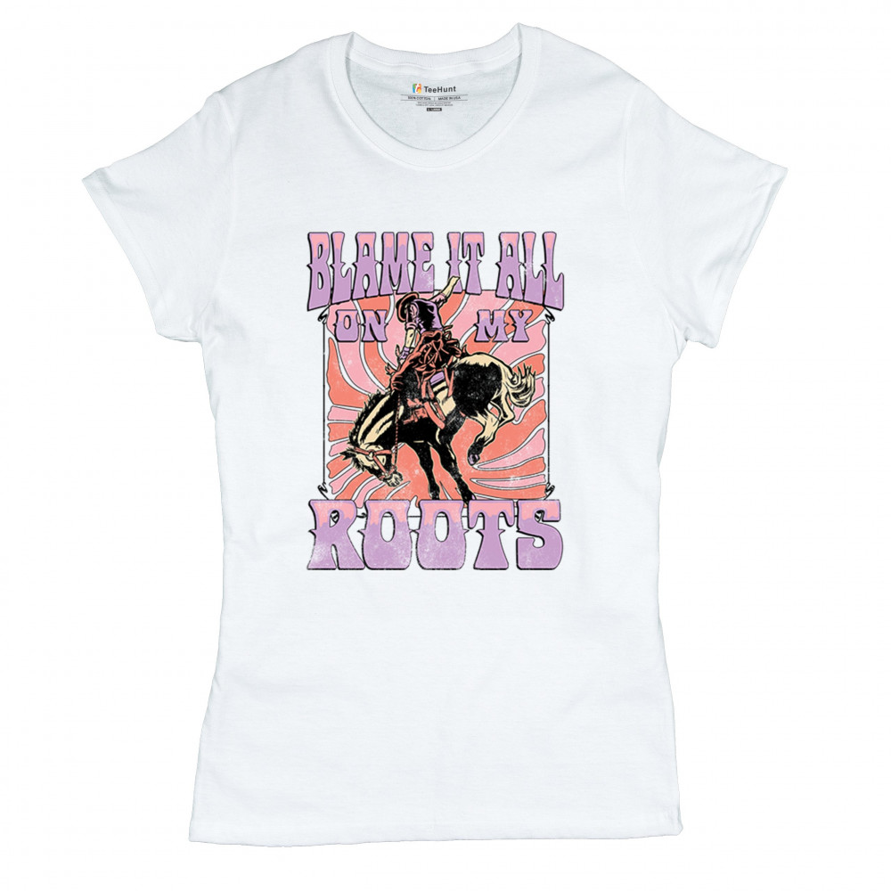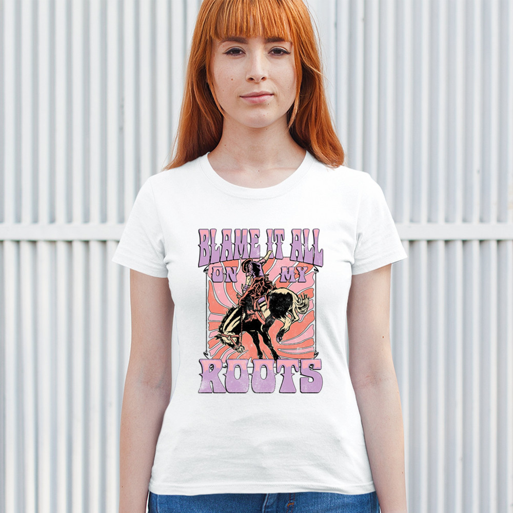 Blame It All On My Roots is vintage country style with rodeo spirit, perfect for small town life, barn dances, and wild country pride.