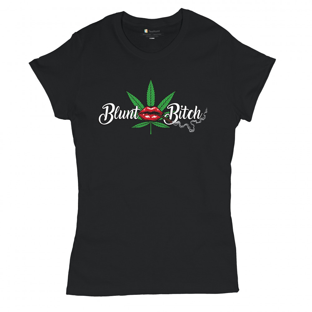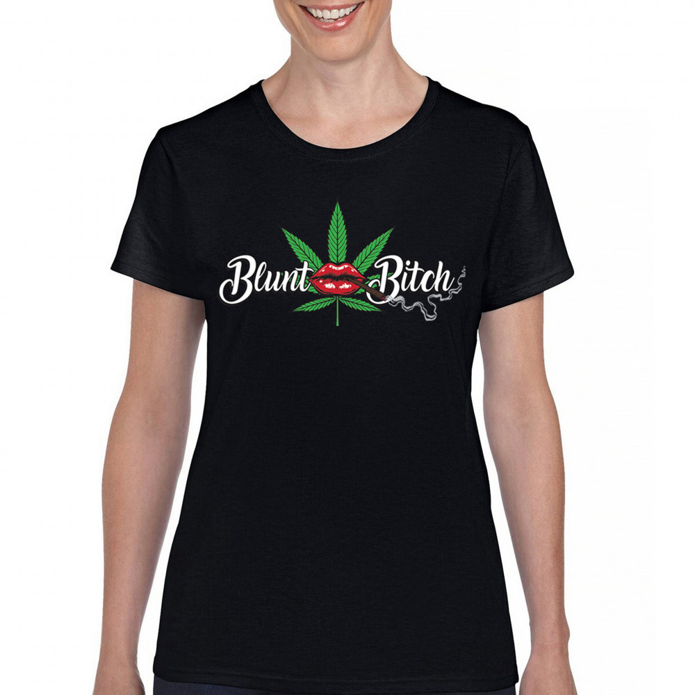 BLUNT BITCH WEED t-shirt cannabis lips stoner 420 marijuana leaf women's tee black