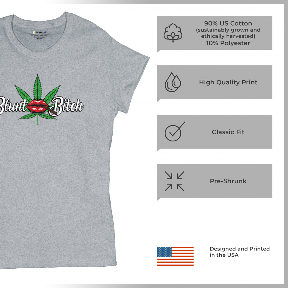 Fierce “Blunt Bitch†design with red lips, blunt, and weed leaf. Bold 420 fashion for confident stoners, cannabis queens, and loud personalities.