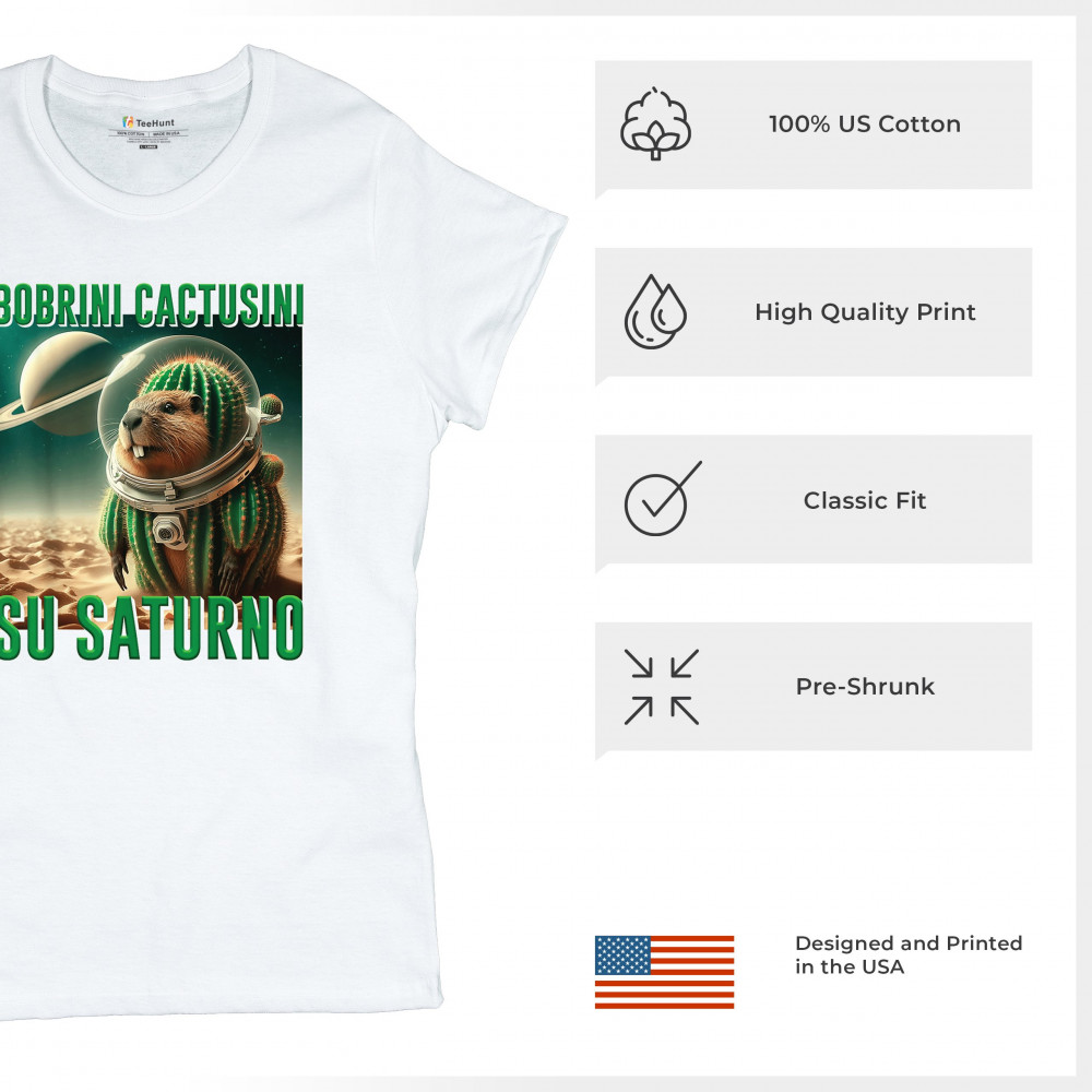 Blast off with Bobrini Cactusini Su Saturno—a cactus-beaver astronaut floating in pure brainrot. This cursed design blends space meme aesthetics, weirdcore fashion, viral Gen Z humor, and surreal animal mashups. It’s the ultimate tee for lovers of ironic internet chaos and absurdist TikTok trends.