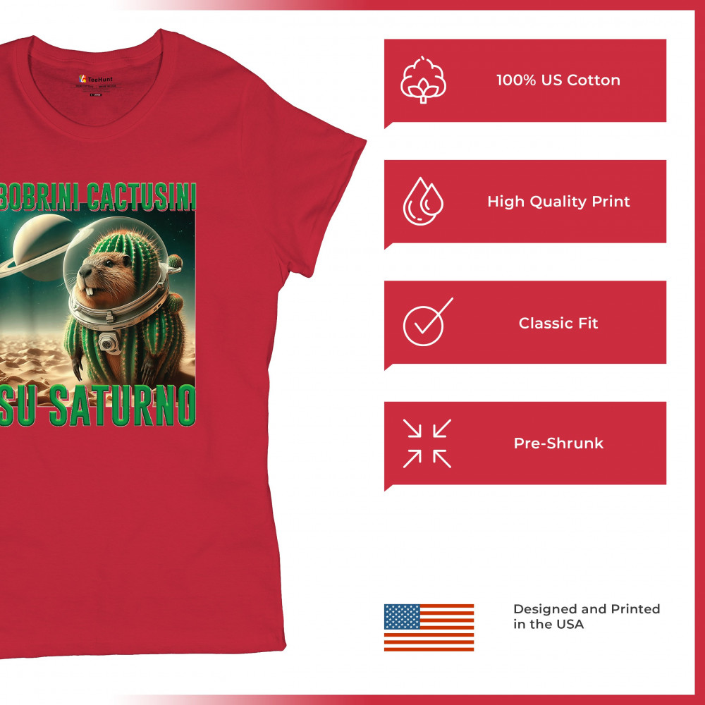 Blast off with Bobrini Cactusini Su Saturno—a cactus-beaver astronaut floating in pure brainrot. This cursed design blends space meme aesthetics, weirdcore fashion, viral Gen Z humor, and surreal animal mashups. It’s the ultimate tee for lovers of ironic internet chaos and absurdist TikTok trends.