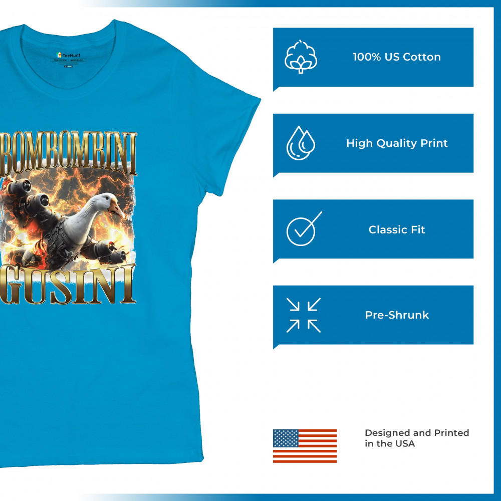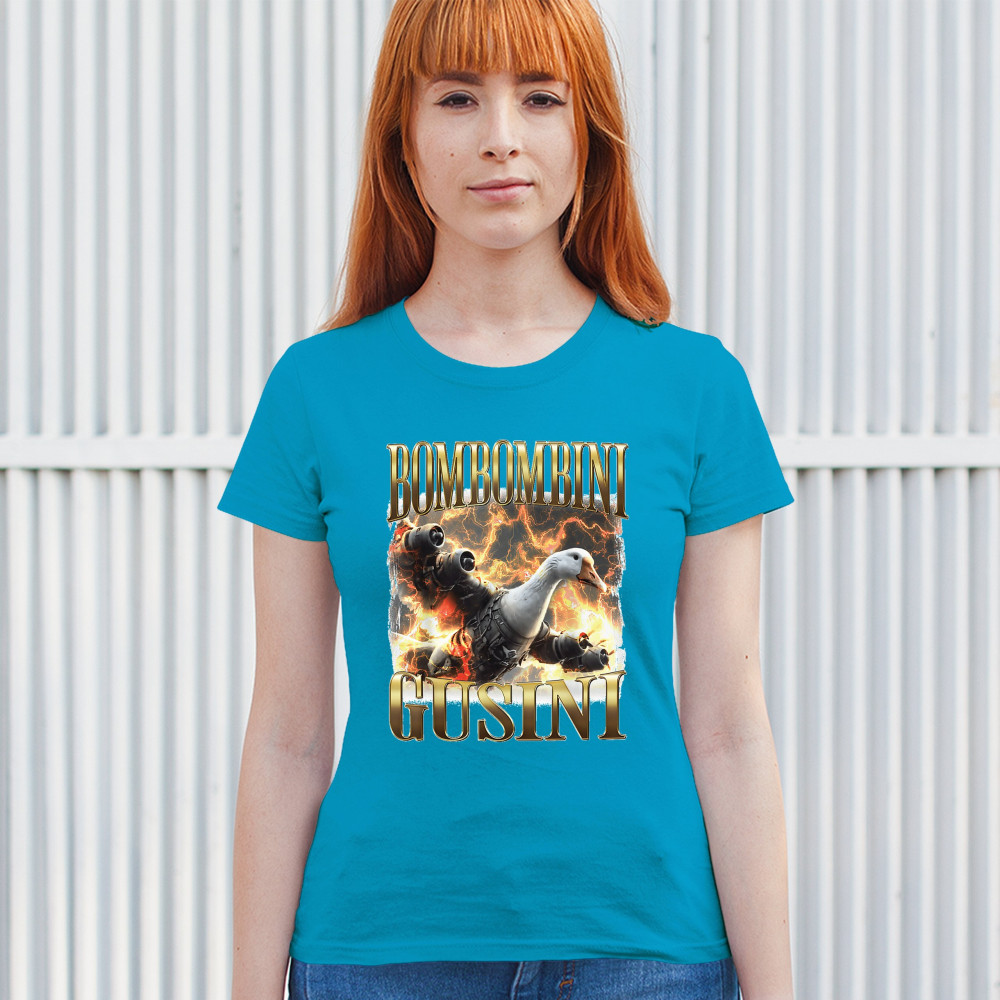 Bombombini Gusini is meme chaos at Mach speed. Featuring a mechanized goose powered by pure Italian Brainrot energy, this design blends cursed-core humor, Gen Z absurdity, ironic fashion, and weirdcore visuals. Perfect for animal meme fans, TikTok-core addicts, and anyone whose humor is completely unhinged.