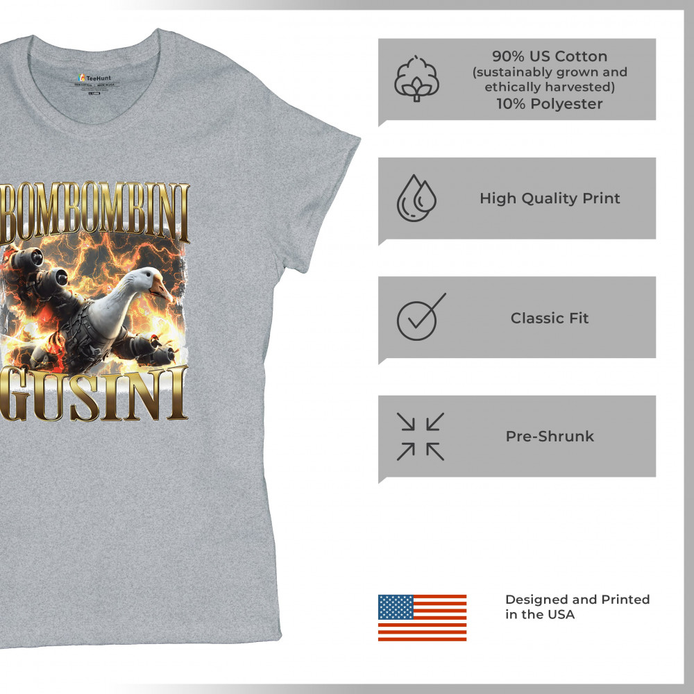 Bombombini Gusini is meme chaos at Mach speed. Featuring a mechanized goose powered by pure Italian Brainrot energy, this design blends cursed-core humor, Gen Z absurdity, ironic fashion, and weirdcore visuals. Perfect for animal meme fans, TikTok-core addicts, and anyone whose humor is completely unhinged.