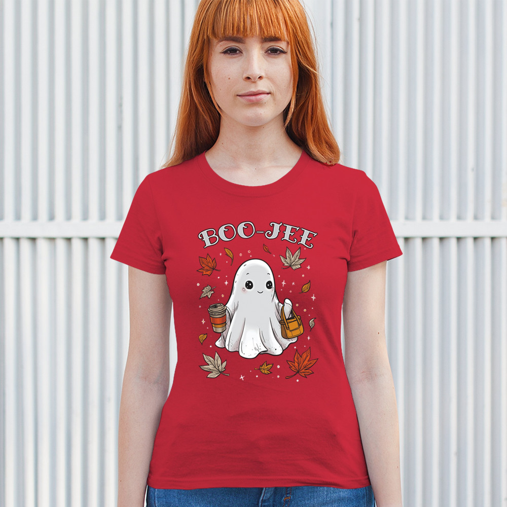Get in the Halloween spirit with this playful Boo-Jee cute ghost design featuring a funny pumpkin head, cozy candy bucket, and spooky-scary charm. Great for trick or treat fun, haunted house parties, autumn leaves strolls, or sipping coffee on a crisp fall night, this shirt blends festive vibes with seasonal style. Perfect for anyone who loves Halloween fun and cozy fall flair.