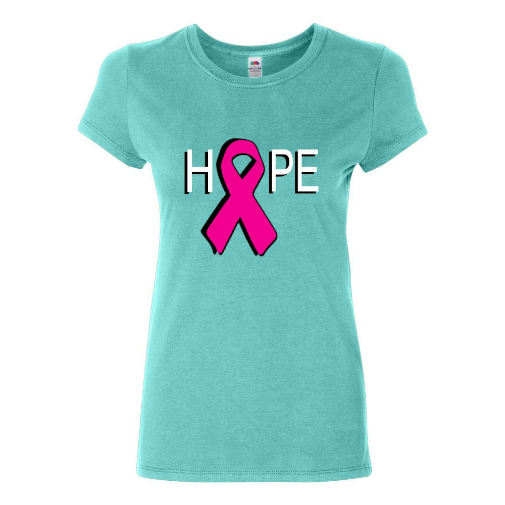 HOPE BREAST CANCER AWARENESS PINK RIBBON cotton t-shirt light blue