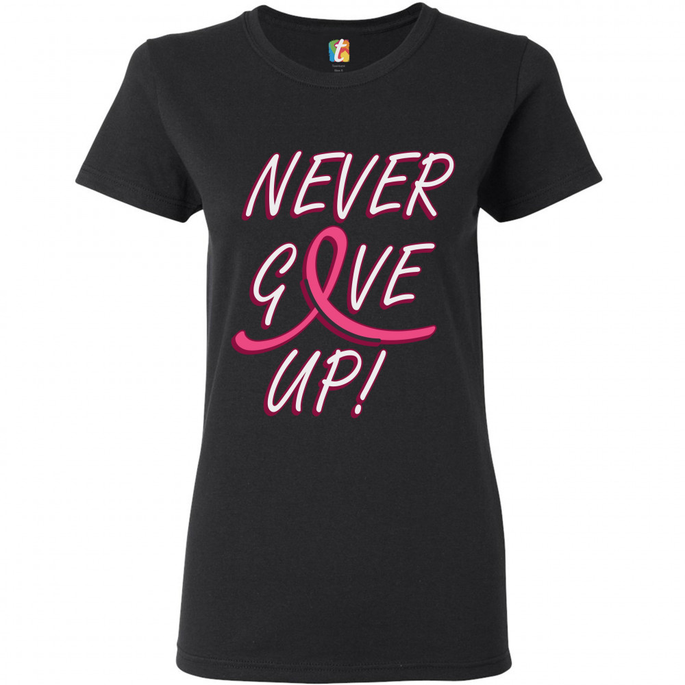 BREAST CANCER AWARENESS NEVER GIVE UP t-shrit pink ribbon women's tee black