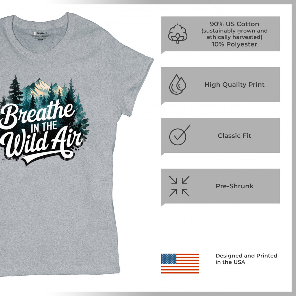 Breathe in the Wild Air brings nature to your wardrobe. Whether you're a forest lover, trail enthusiast, or weekend hiker, this design embraces adventure, wilderness vibes, and peaceful campfire moments. Ideal for outdoorsmen, off-grid travelers, and national park explorers seeking freedom in the trees.
