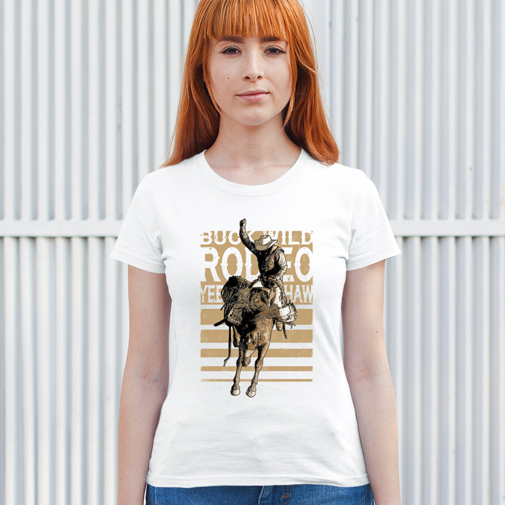 Rodeo bronc rider design with cowboy grit. Western graphic for fans of ranch life, bucking broncos, and rodeo events.