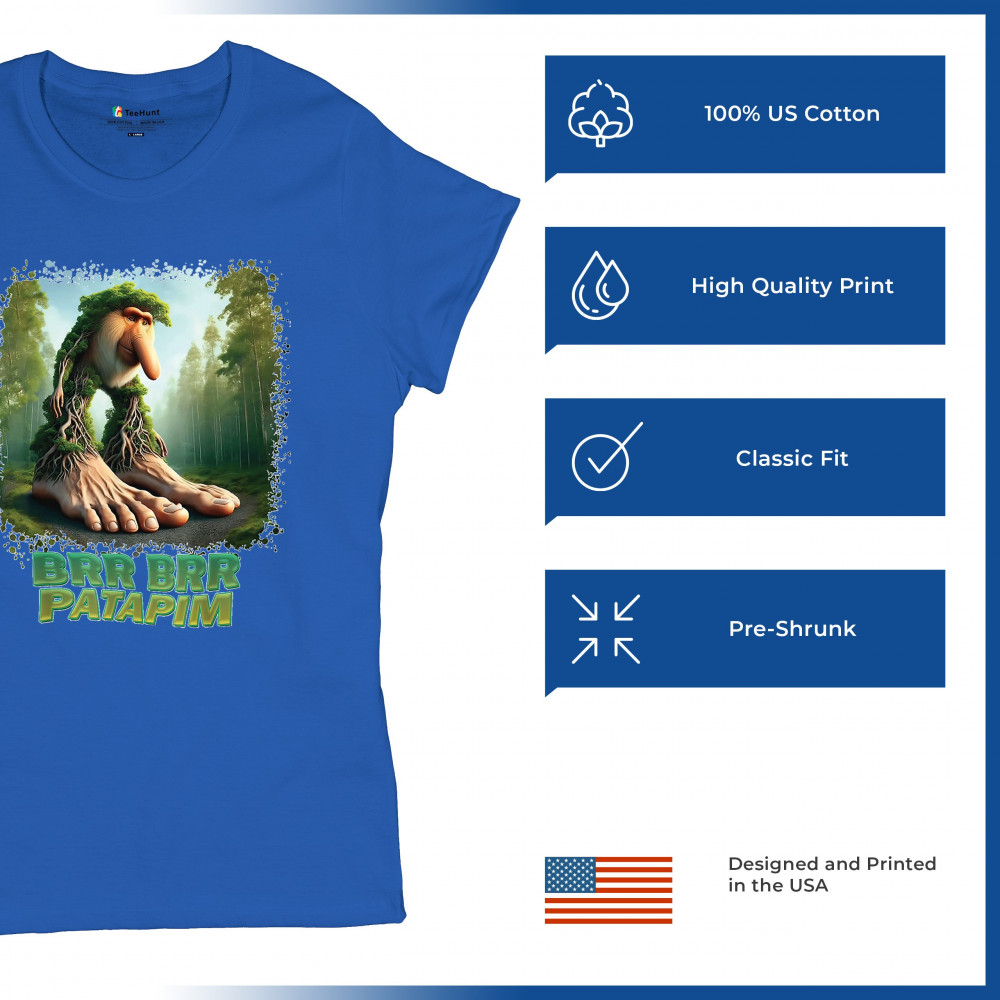 Brr Brr Patapim is forest-core gone full brainrot. Featuring a massive-footed tree-beast with cryptid energy, this design blends cursed meme culture, TikTok humor, weirdcore visuals, and surreal Gen Z fashion. It’s ideal for fans of absurd monster mashups and internet chaos fits.