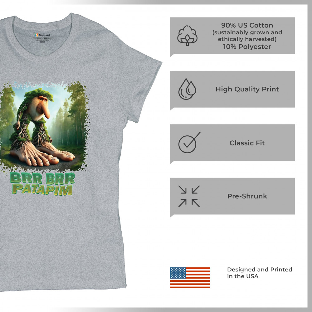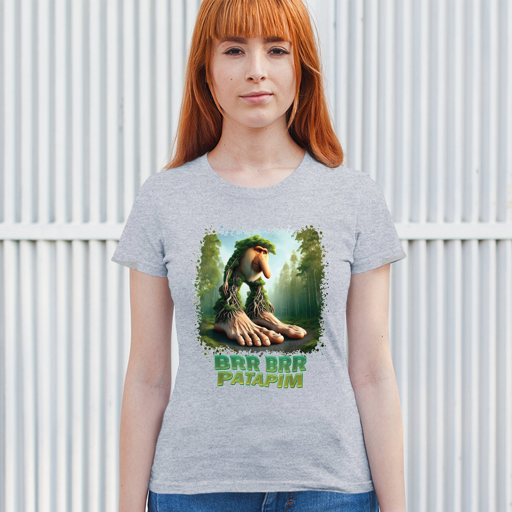 Brr Brr Patapim is forest-core gone full brainrot. Featuring a massive-footed tree-beast with cryptid energy, this design blends cursed meme culture, TikTok humor, weirdcore visuals, and surreal Gen Z fashion. It’s ideal for fans of absurd monster mashups and internet chaos fits.