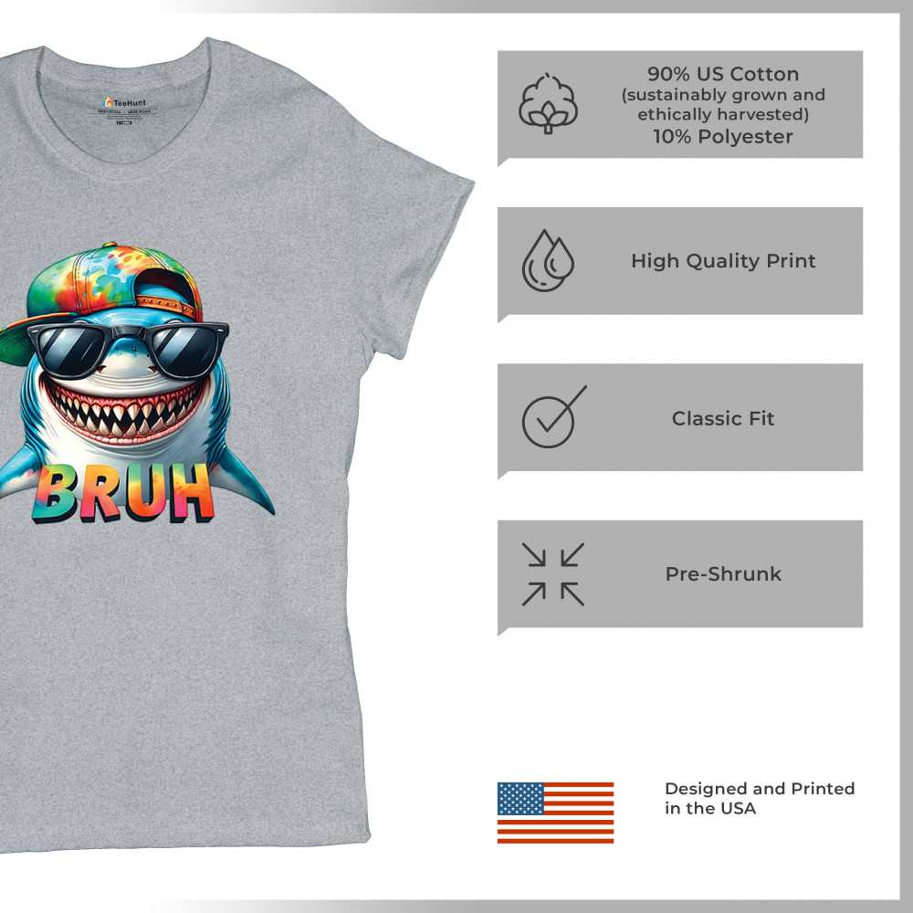 Ride the wave of meme culture with this Bruh Shark Gen Z design, featuring goofy cartoon shark humor, Sigma Aura vibes, and Italian Brainrot energy. Perfect for fans of bruh meme shirts, summer beach vibes, ocean party style, and funny animal meme culture. A must-have for anyone who loves Skibidi Sigma Rizz humor.