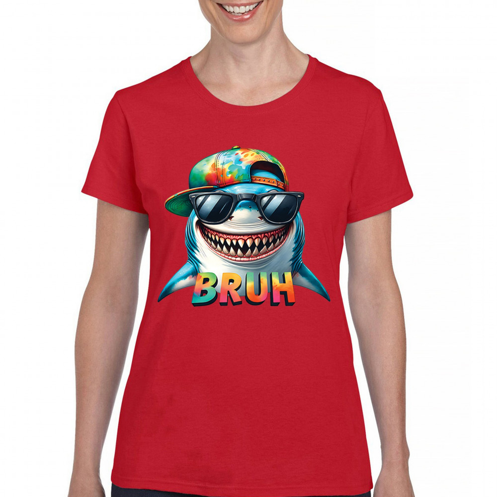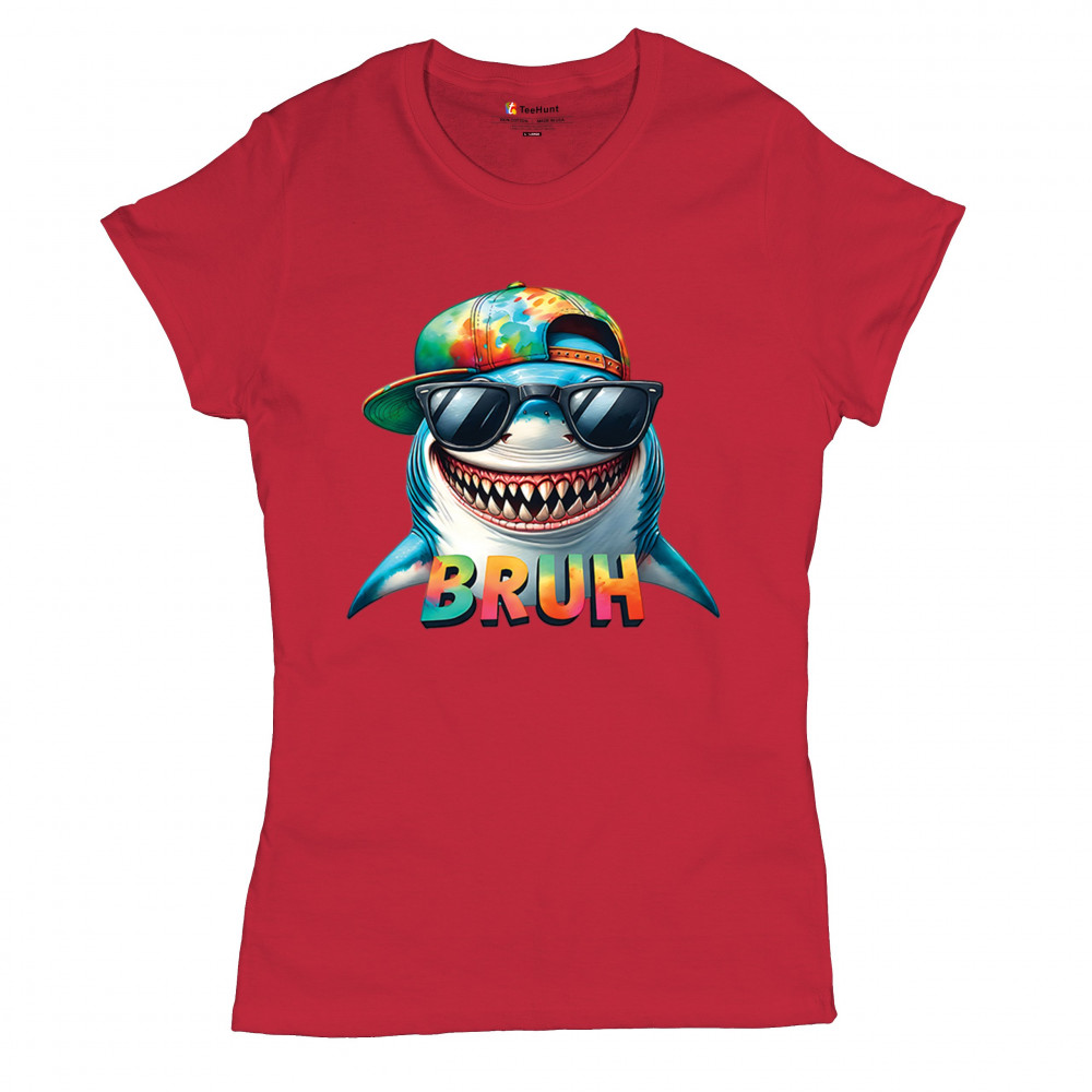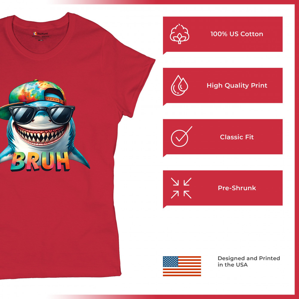 Bruh Shark meme shirt with Gen Z humor, cartoon shark design, summer beach vibes, Sigma Aura, and Italian Brainrot internet humor.