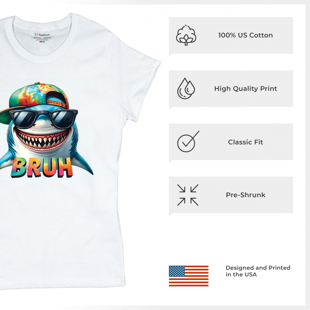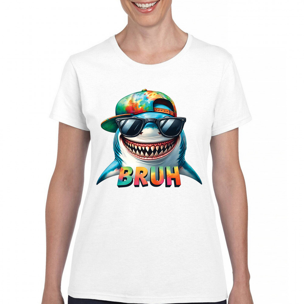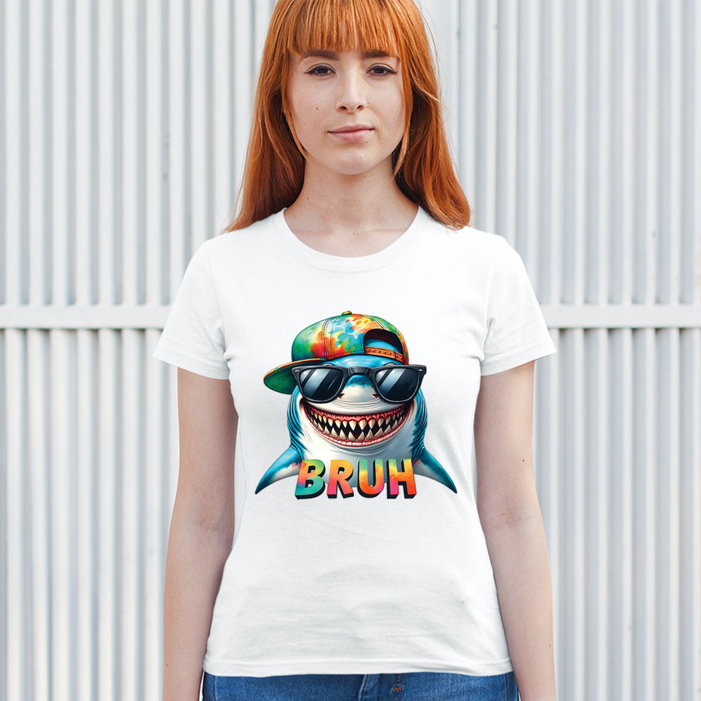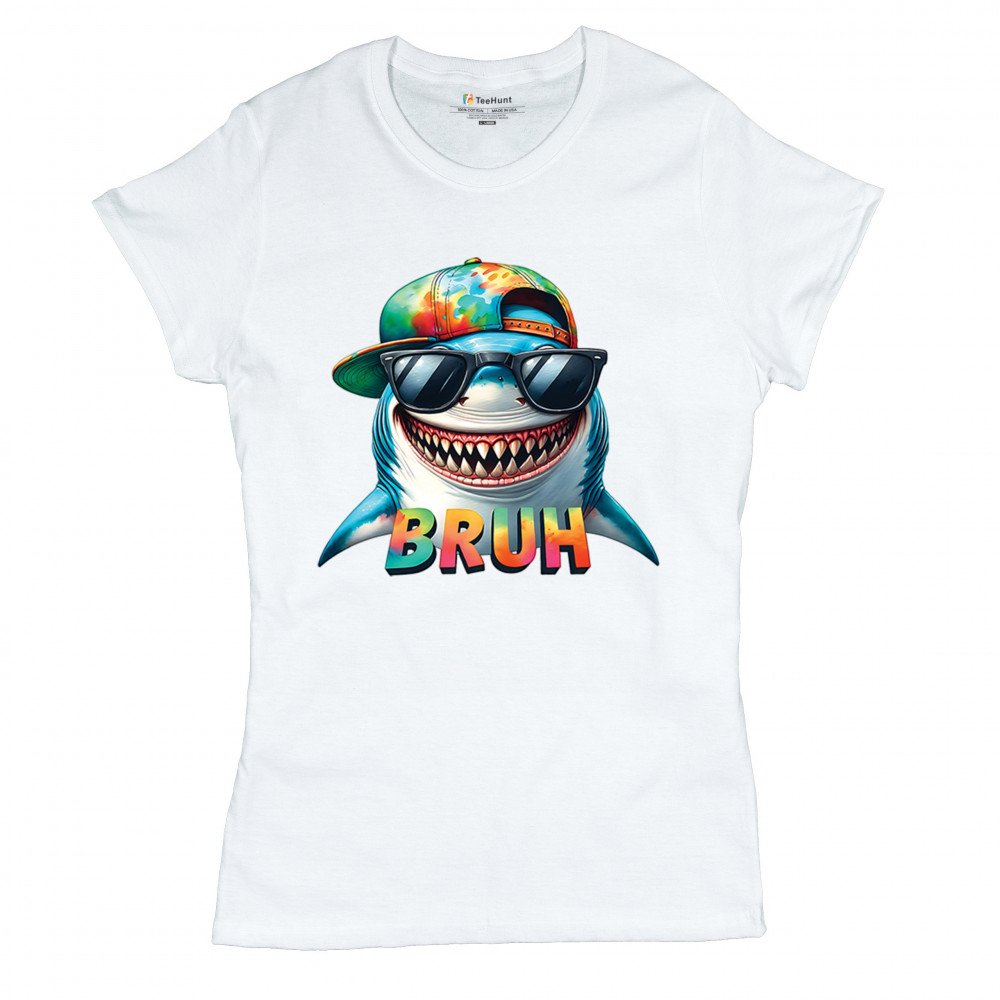 Bruh Shark meme shirt with Gen Z humor, cartoon shark design, summer beach vibes, Sigma Aura, and Italian Brainrot internet humor.