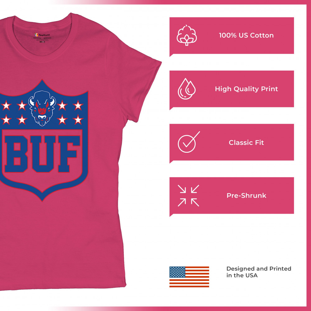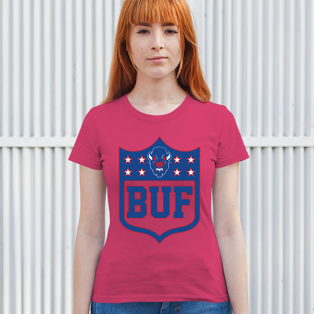 Bold Buffalo bison shield design for game day gear, tailgating, Sunday football, and championship pride in The Queen City.