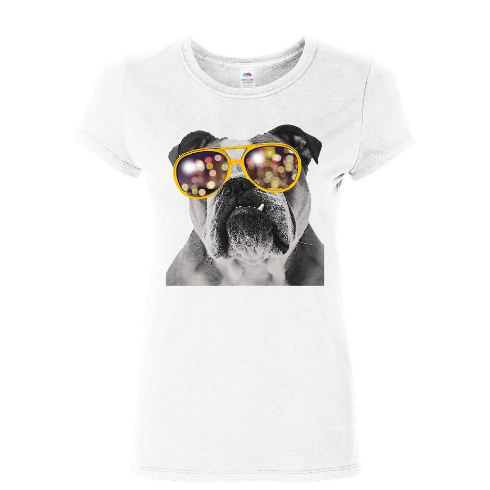 BULLDOG WEARING GLASSES women's t-shirt cute dog swag pet lovers urban shirt white