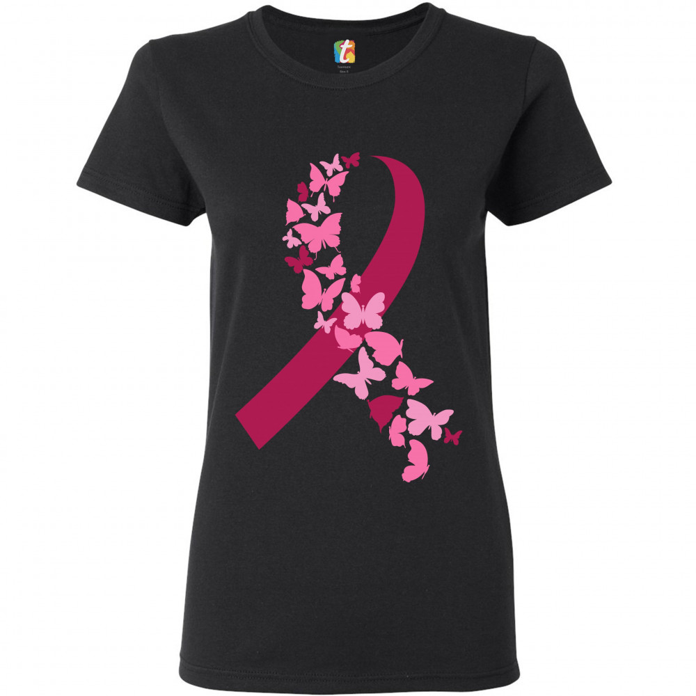 BUTTERFLIES PINK RIBBON t-shirt breast cancer awareness hope women's tee black