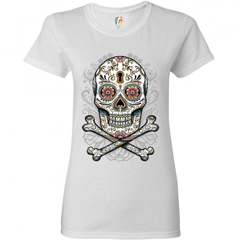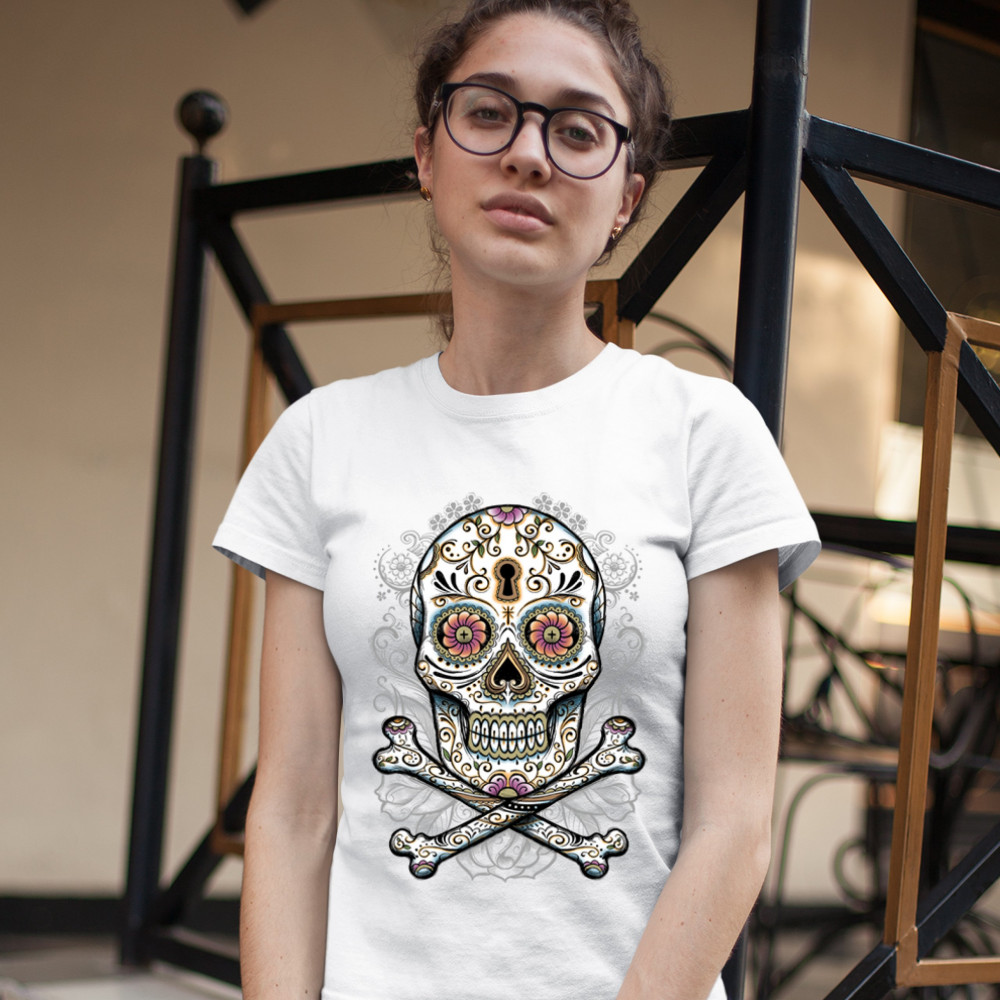 CALAVERA SUGAR SKULL t-shirt mexican day of the dead dia de muertos women's tee white