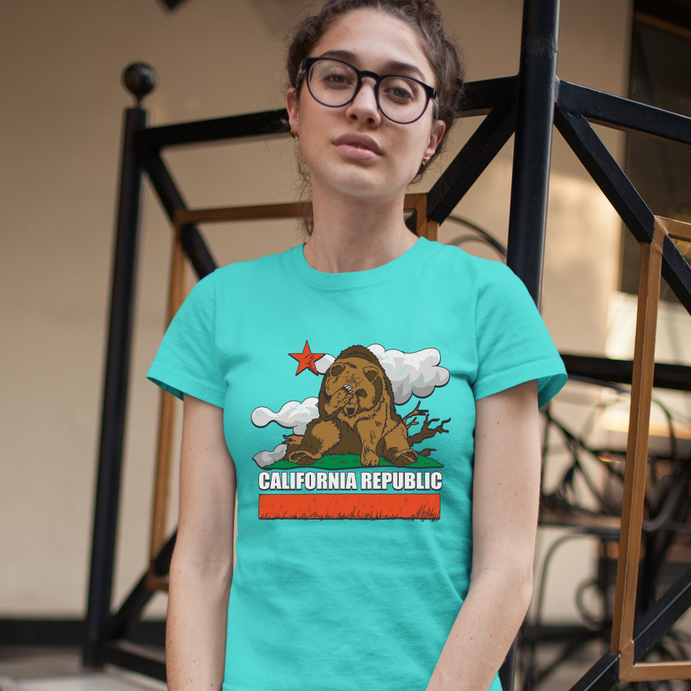 A political print featuring the grizzly bear of the California State flag sitting on it's butt and facepalming. The print says: "California Republic". A great choice for anyone who isn't a fan of California.