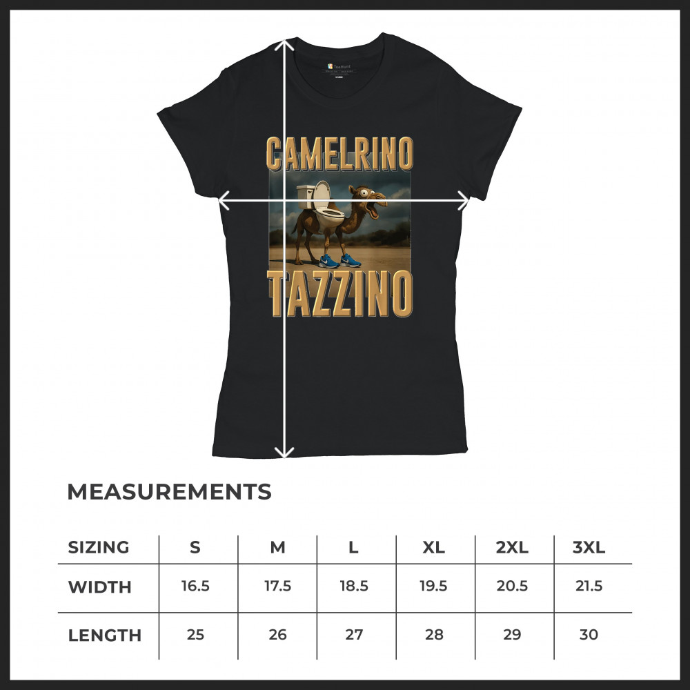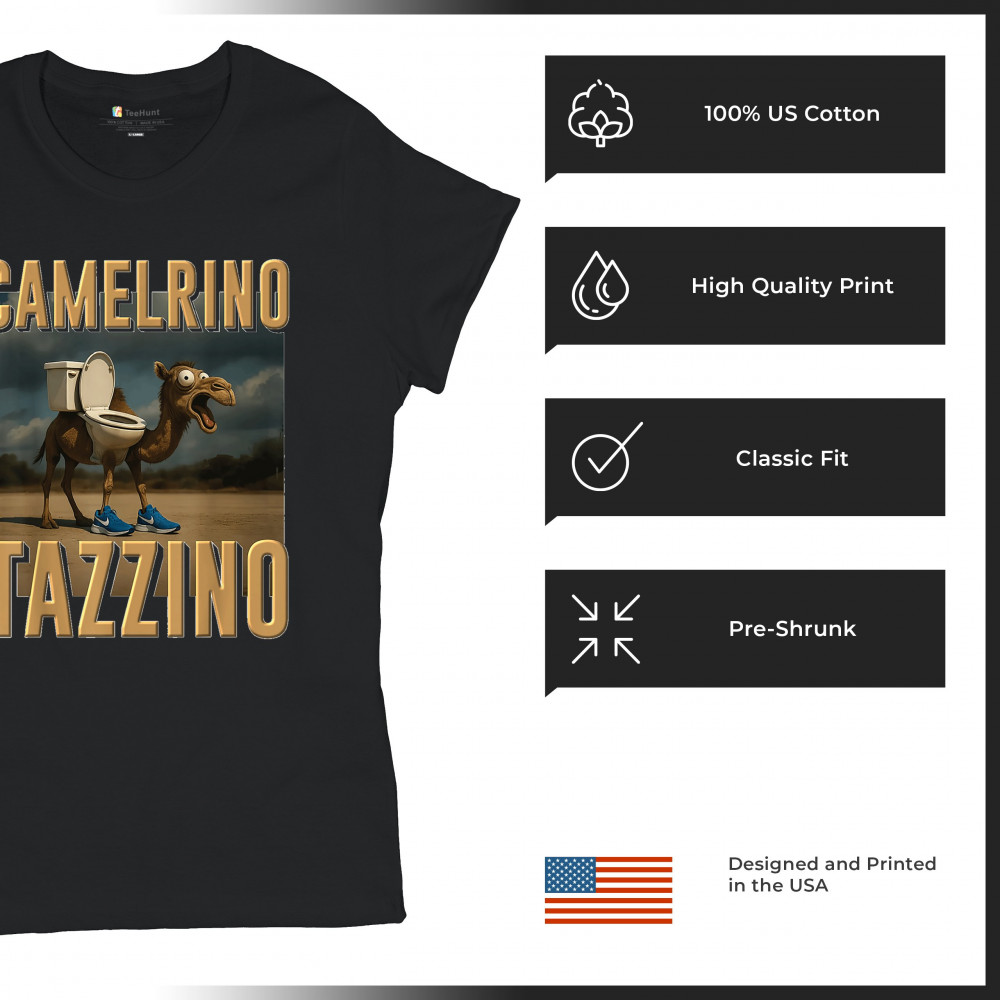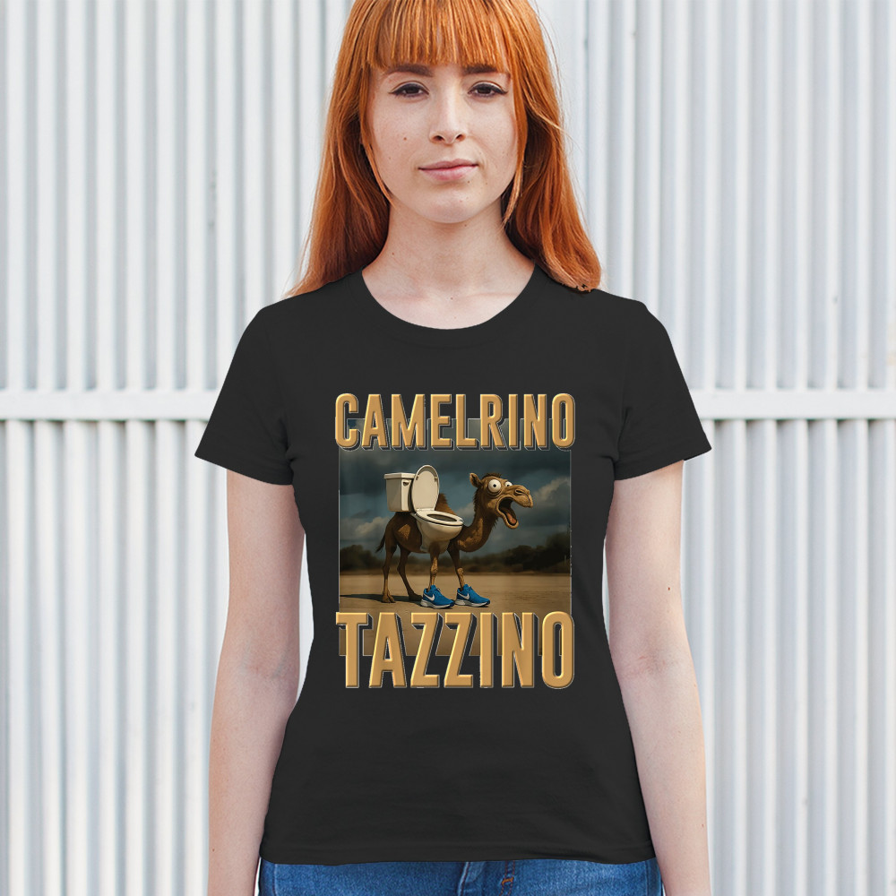 CAMELRINO TAZZINO t-shirt funny italian brainrot gen z alpha meme women's tee black