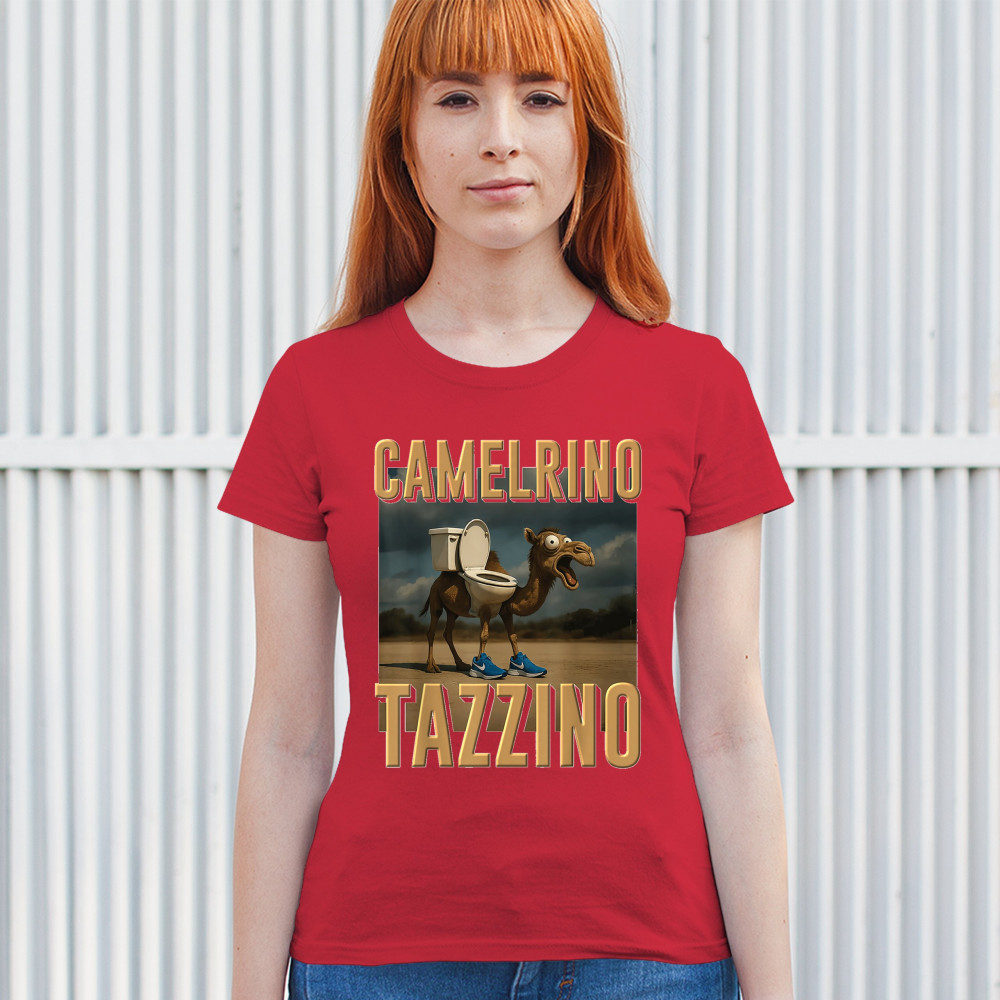 Camelrino Tazzino fuses toilet-core fashion, cursed camel chaos, TikTok meme humor, surreal animal design, and Gen Z absurdity.