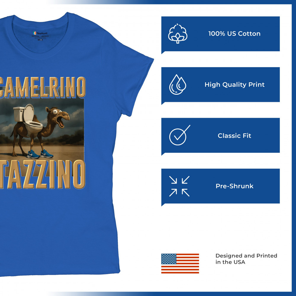 Camelrino Tazzino fuses toilet-core fashion, cursed camel chaos, TikTok meme humor, surreal animal design, and Gen Z absurdity.